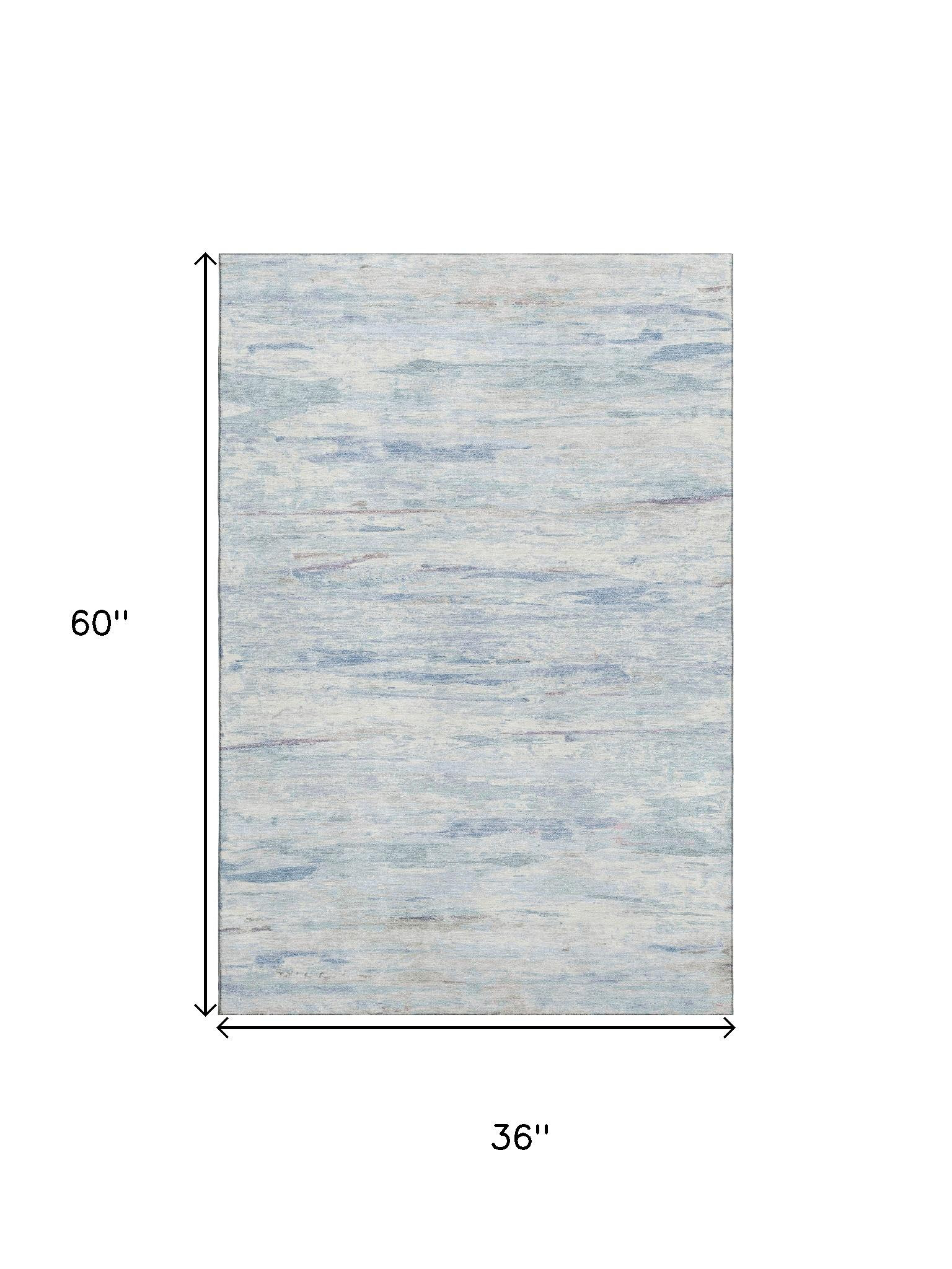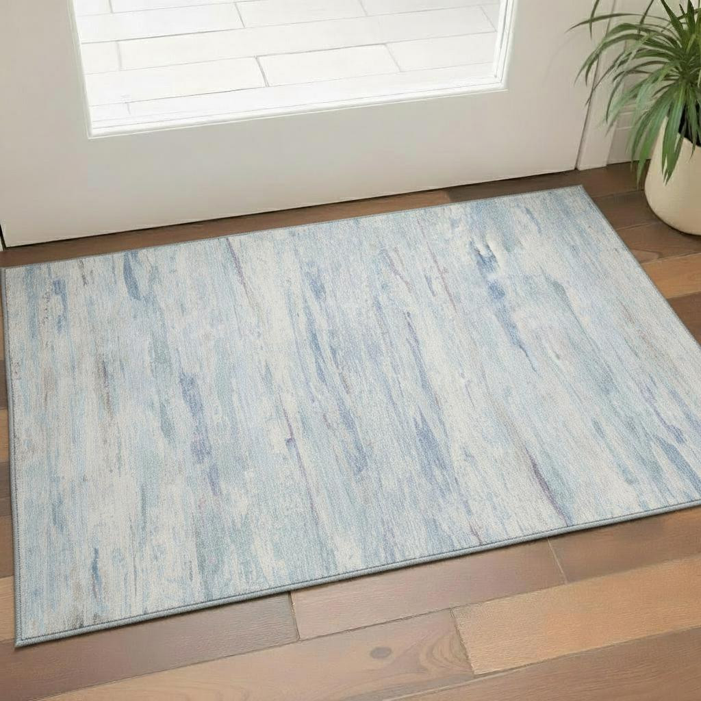 Add some artistry to your room with this 3-foot x 5-foot sky blue and ivory abstract washable area rug with uv protection. Ideal for spaces with kids and pets, this rug is stain resistant to help repel dirt and spilled liquids. Built to last, this rug crafted from polyester fibers is known for its durability and long lasting appeal. Rugs are a great way to showcase your style, hide imperfections, warm your home and reduce noise. This smaller sized, transitional styled rug is just what you need for your walkway, bedside, in front of door, cabinet, refrigerator, or chair. 36.00-inch h x 60.00-inch w x 0.39-inch d.