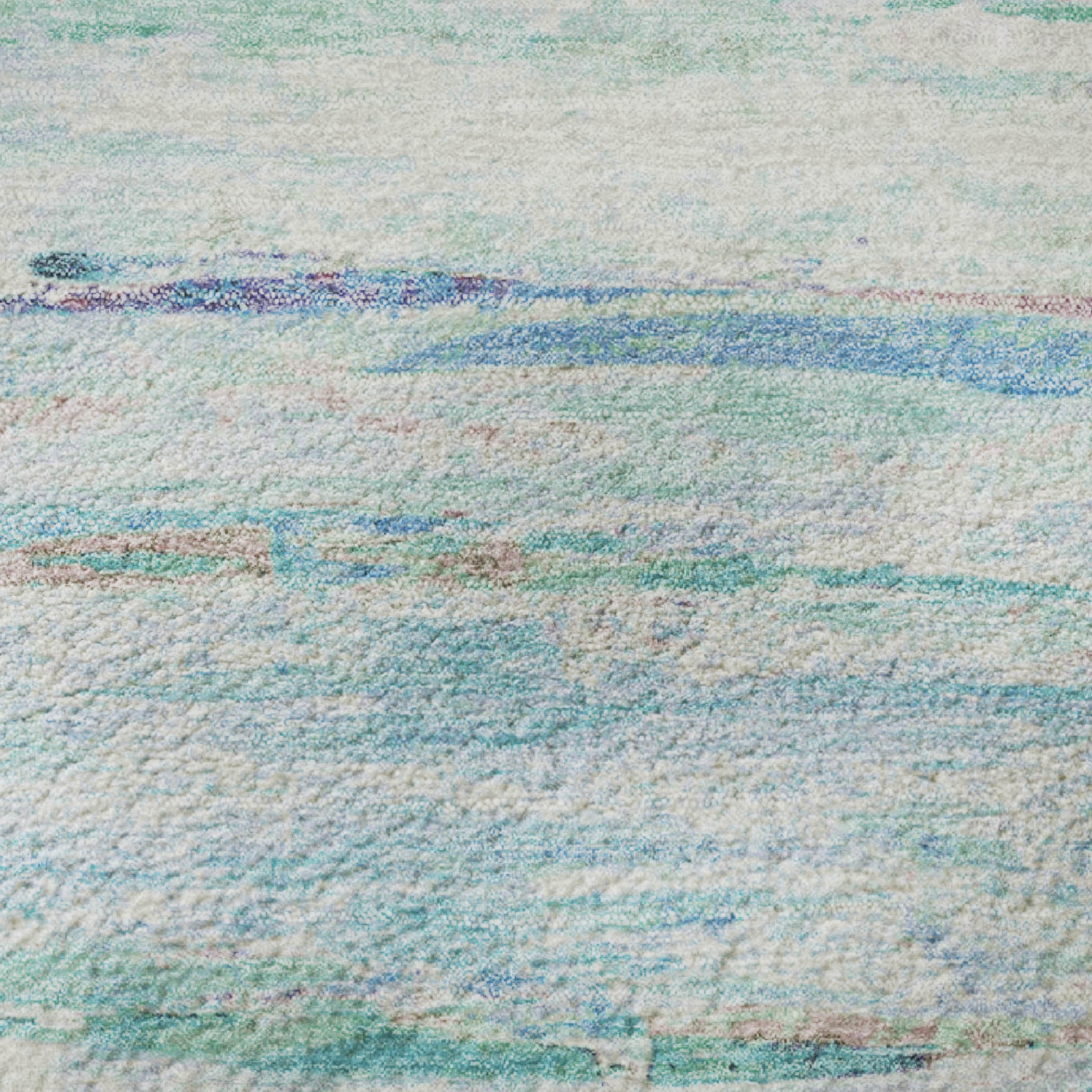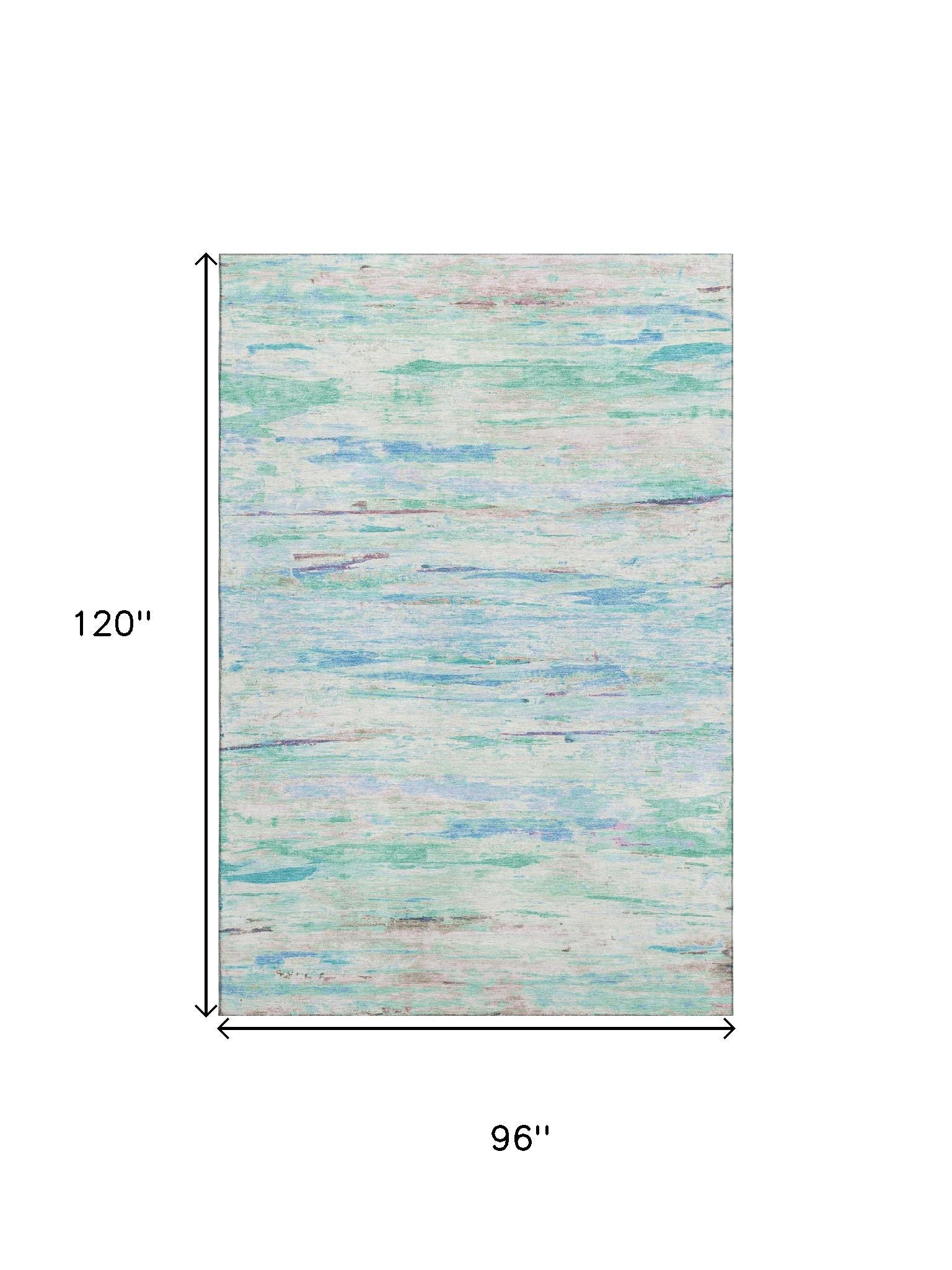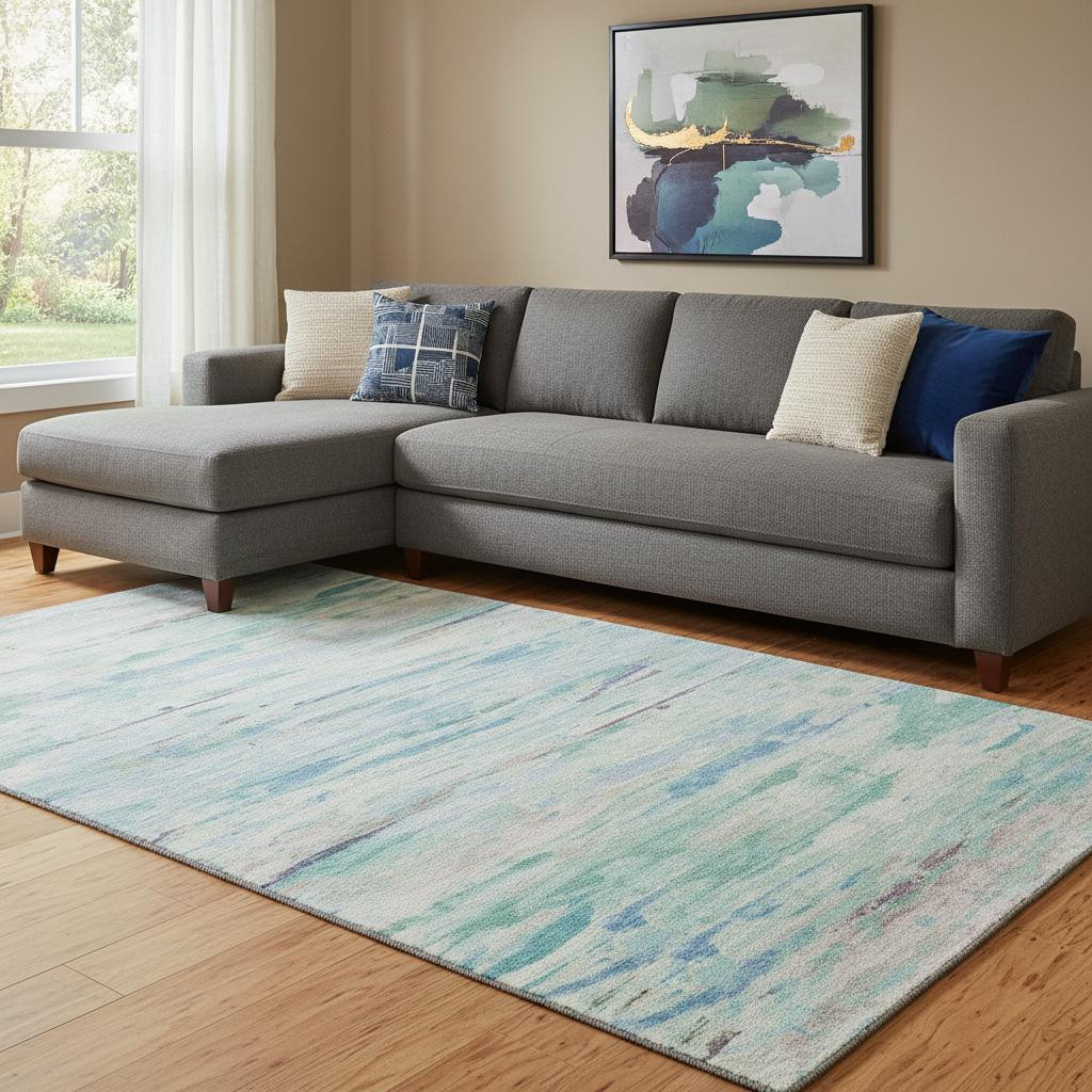 Add great coloration and comfortable texture to your space with this 8-foot x 10-foot teal and ivory abstract washable area rug with uv protection. Ideal for spaces with kids and pets, this rug is stain resistant to help repel dirt and spilled liquids. Built to last, this rug crafted from polyester fibers is known for its durability and long lasting appeal. Rugs are a great way to showcase your style, hide imperfections, warm your home and reduce noise. This larger sized, transitional styled rug is ready to create a focal point or statement piece in your room. 96.00-inch h x 120.00-inch w x 0.39-inch d.