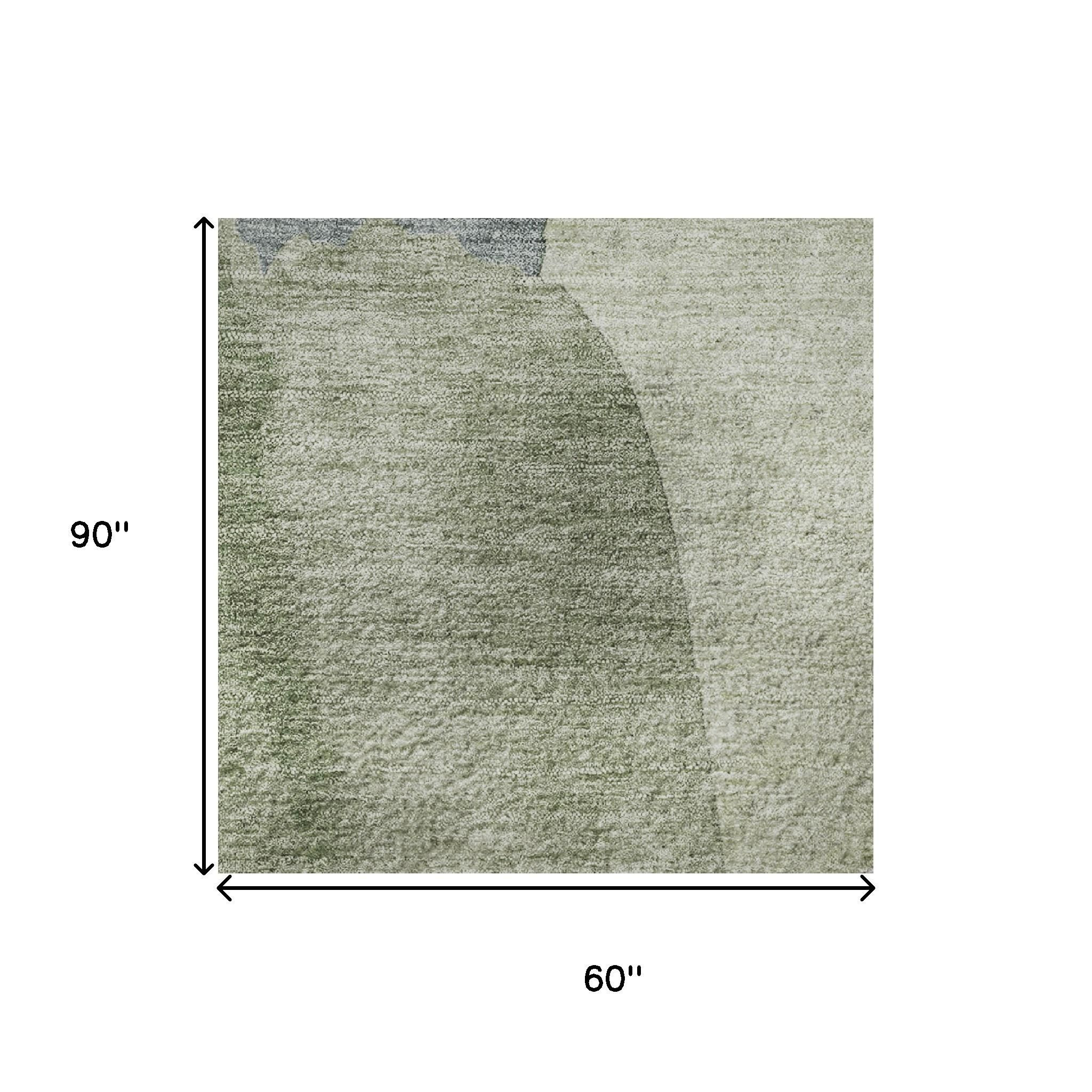 Add great coloration and comfortable texture to your space with this 5-foot x 8-foot artichoke green lavender and taupe abstract washable area rug with uv protection. Ideal for spaces with kids and pets, this rug is stain resistant to help repel dirt and spilled liquids. Built to last, this rug crafted from polyester fibers is known for its durability and long lasting appeal. Rugs are a great way to showcase your style, hide imperfections, warm your home and reduce noise. This larger sized, transitional styled rug is ready to create a focal point or statement piece in your room. 60.00-inch h x 90.00-inch w x 0.39-inch d.