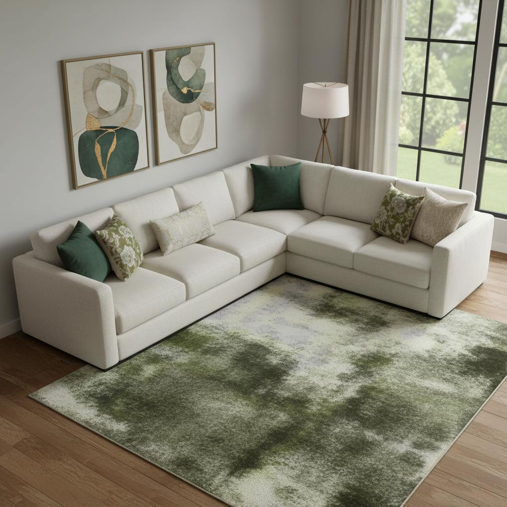 Set an inviting tone in your space with this 10-foot x 14-foot artichoke green lavender and taupe abstract washable area rug with uv protection. Ideal for spaces with kids and pets, this rug is stain resistant to help repel dirt and spilled liquids. Built to last, this rug crafted from polyester fibers is known for its durability and long lasting appeal. Rugs are a great way to showcase your style, hide imperfections, warm your home and reduce noise. This larger sized, transitional styled rug is ready to create a focal point or statement piece in your room. 120.00-inch h x 168.00-inch w x 0.39-inch d.