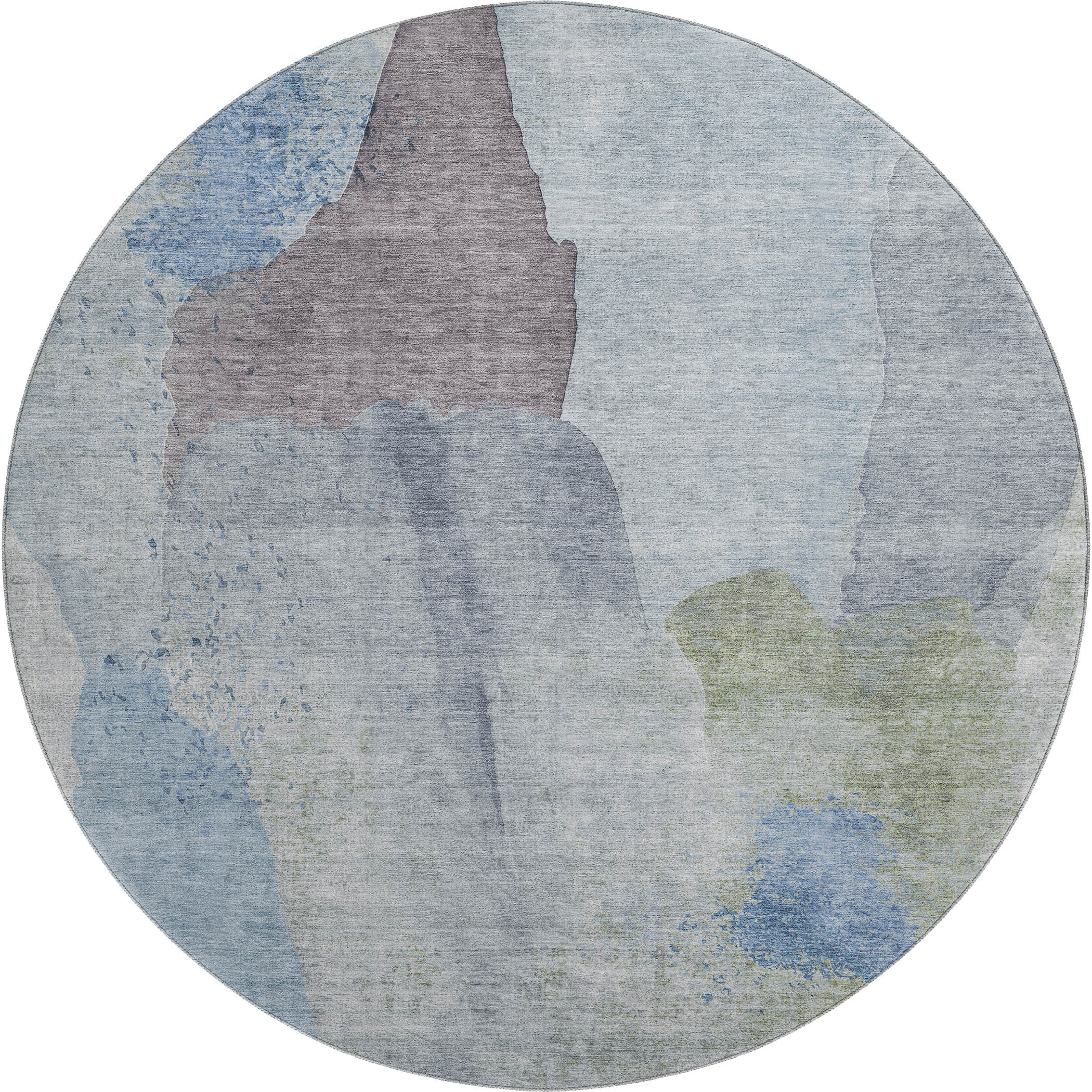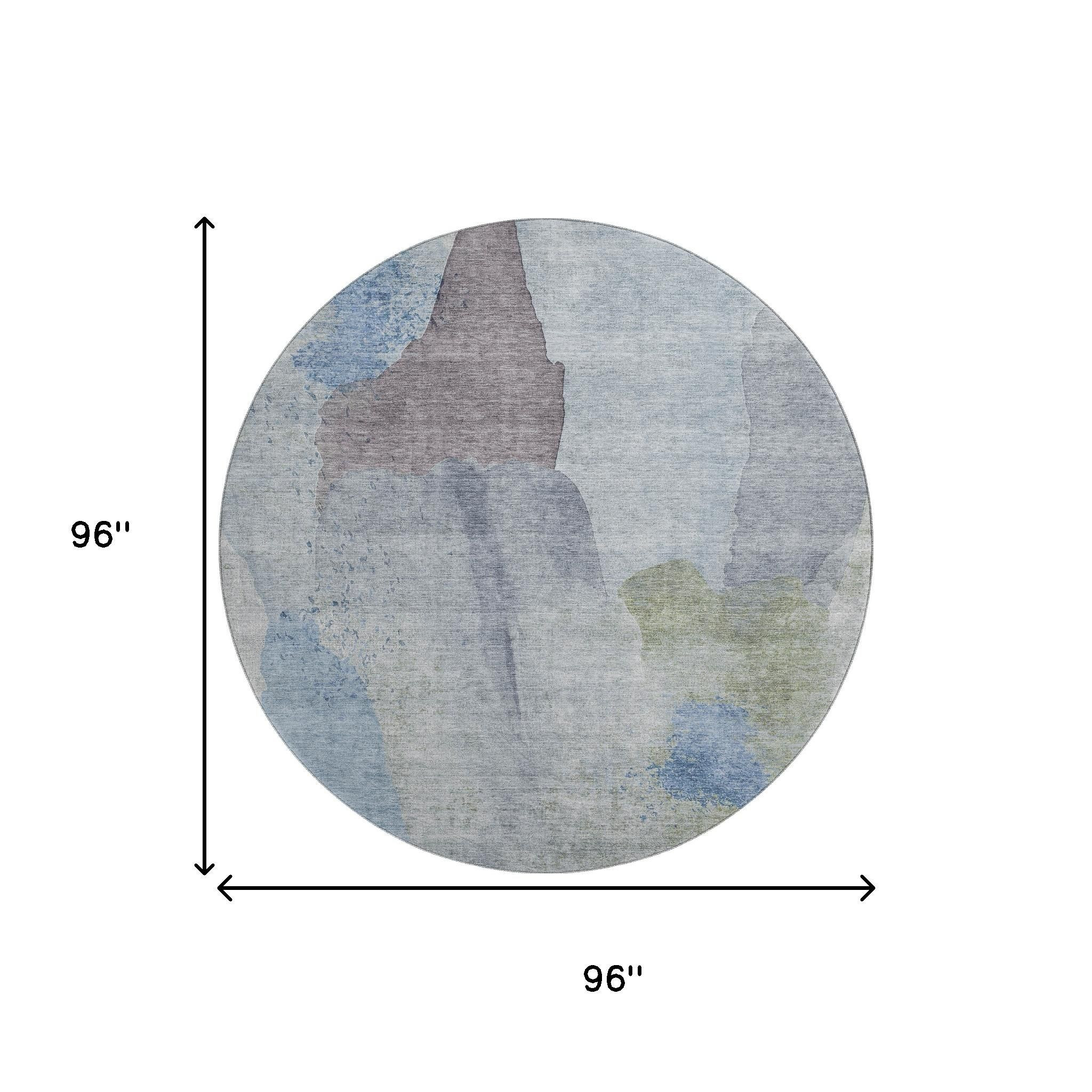Set an inviting tone in your space with this 8-foot denim blue and gray abstract washable round rug with uv protection. Ideal for spaces with kids and pets, this rug is stain resistant to help repel dirt and spilled liquids. Built to last, this rug crafted from polyester fibers is known for its durability and long lasting appeal. Rugs are a great way to showcase your style, hide imperfections, warm your home and reduce noise. This larger sized, transitional styled rug is ready to create a focal point or statement piece in your room. 96.00-inch h x 96.00-inch w x 0.39-inch d.
