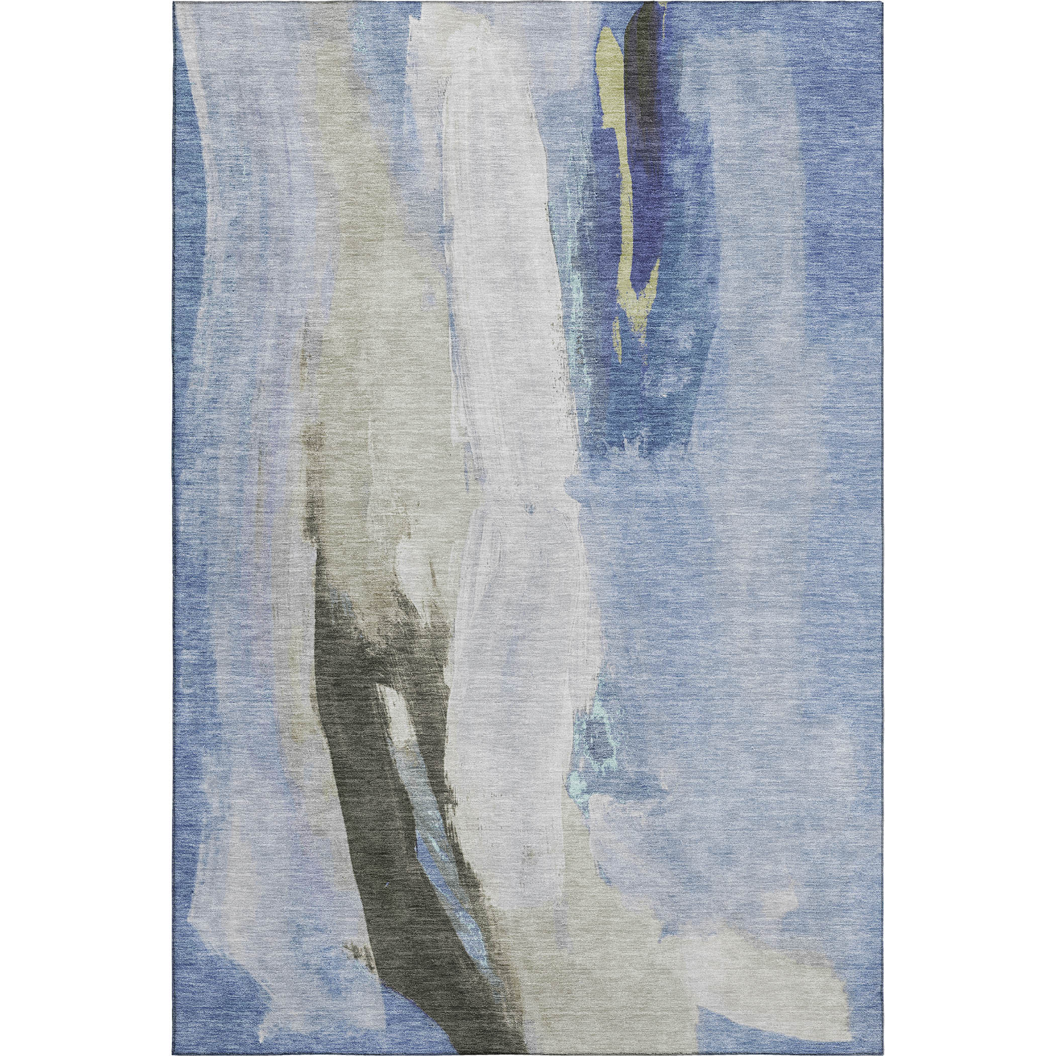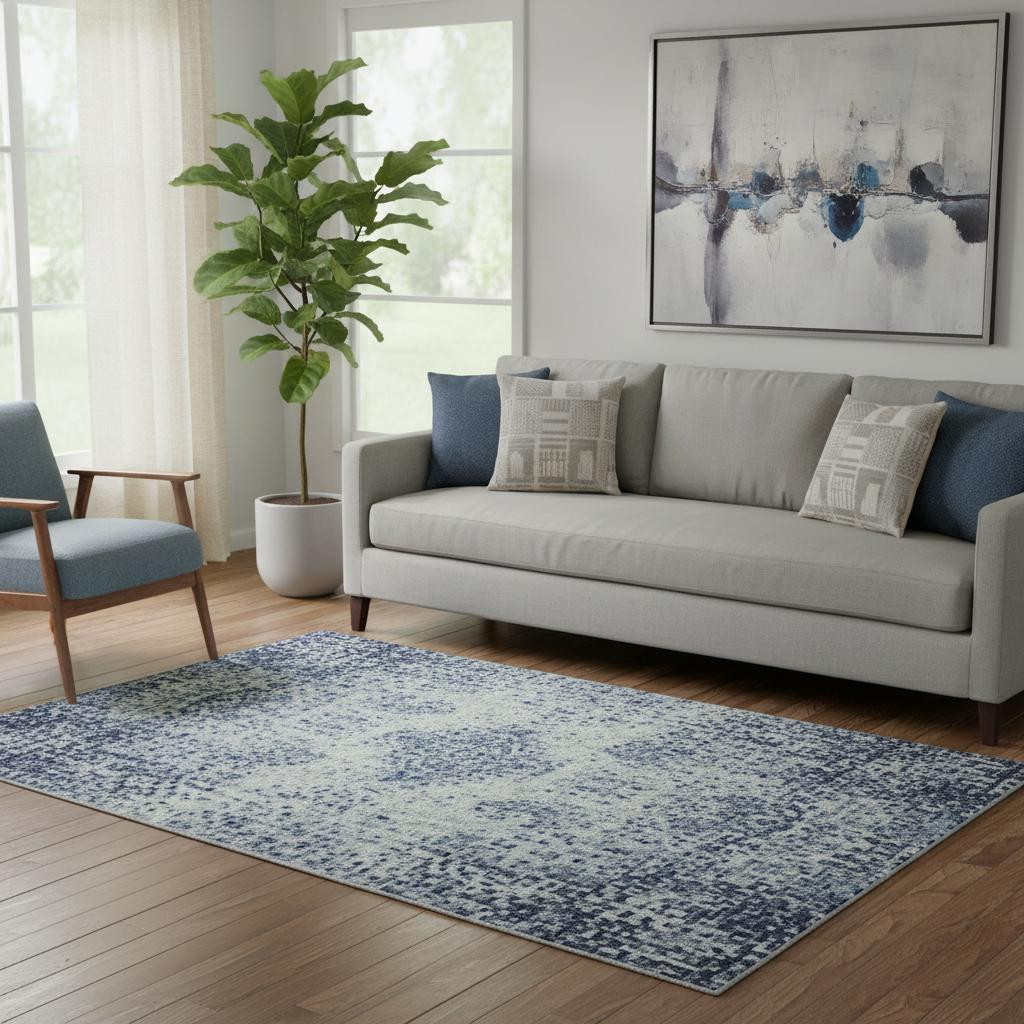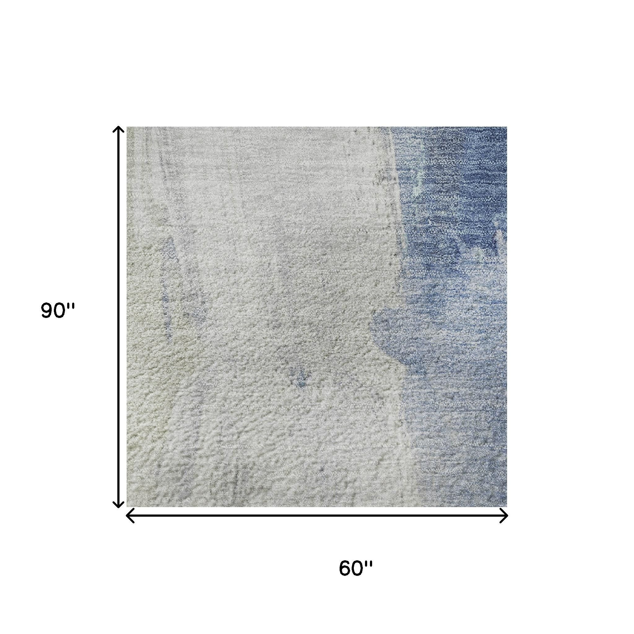 Add great coloration and comfortable texture to your space with this 5-foot x 8-foot denim blue gray and ivory abstract washable area rug with uv protection. Ideal for spaces with kids and pets, this rug is stain resistant to help repel dirt and spilled liquids. Built to last, this rug crafted from polyester fibers is known for its durability and long lasting appeal. Rugs are a great way to showcase your style, hide imperfections, warm your home and reduce noise. This larger sized, transitional styled rug is ready to create a focal point or statement piece in your room. 60.00-inch h x 90.00-inch w x 0.39-inch d.