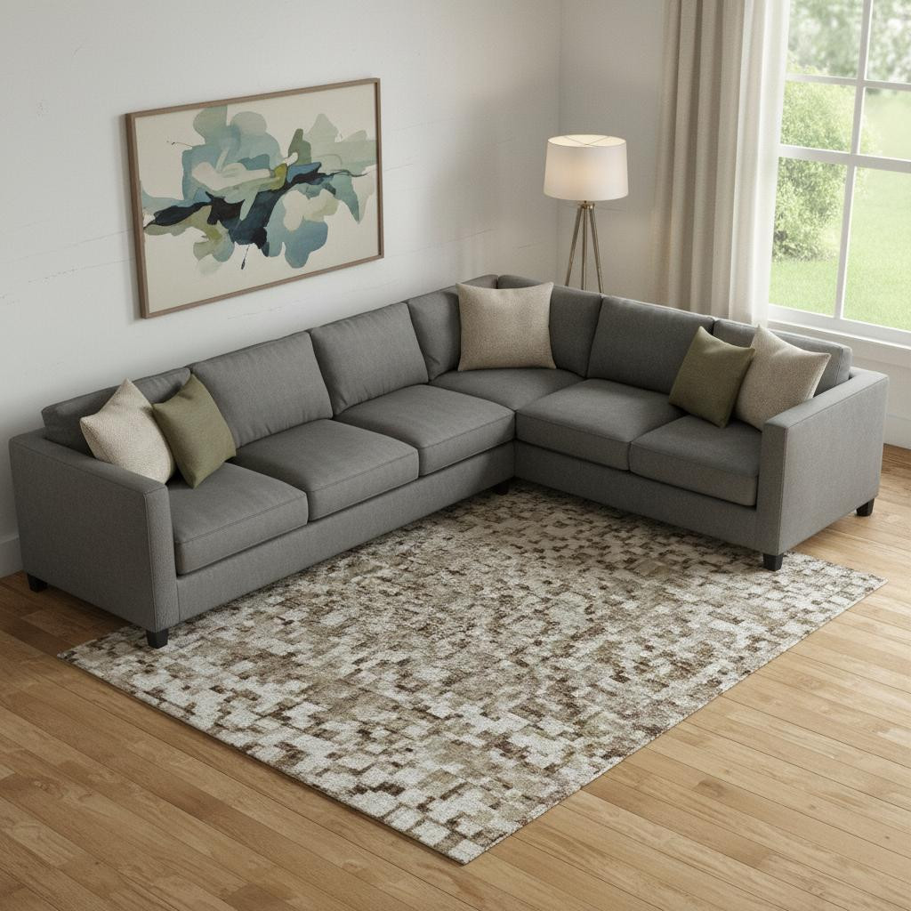 Add some artistry to your room with this 9-foot x 12-foot ivory charcoal and beige abstract washable area rug with uv protection. Ideal for spaces with kids and pets, this rug is stain resistant to help repel dirt and spilled liquids. Built to last, this rug crafted from polyester fibers is known for its durability and long lasting appeal. Rugs are a great way to showcase your style, hide imperfections, warm your home and reduce noise. This larger sized, transitional styled rug is ready to create a focal point or statement piece in your room. 108.00-inch h x 144.00-inch w x 0.39-inch d.
