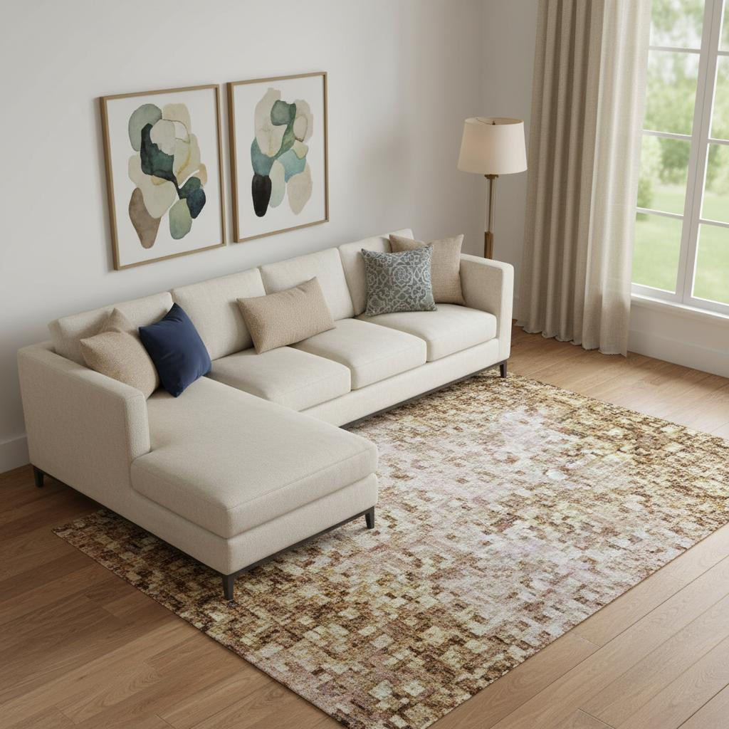 Set an inviting tone in your space with this 10-foot x 14-foot beige lavender and ivory abstract washable area rug with uv protection. Ideal for spaces with kids and pets, this rug is stain resistant to help repel dirt and spilled liquids. Built to last, this rug crafted from polyester fibers is known for its durability and long lasting appeal. Rugs are a great way to showcase your style, hide imperfections, warm your home and reduce noise. This larger sized, transitional styled rug is ready to create a focal point or statement piece in your room. 120.00-inch h x 168.00-inch w x 0.39-inch d.