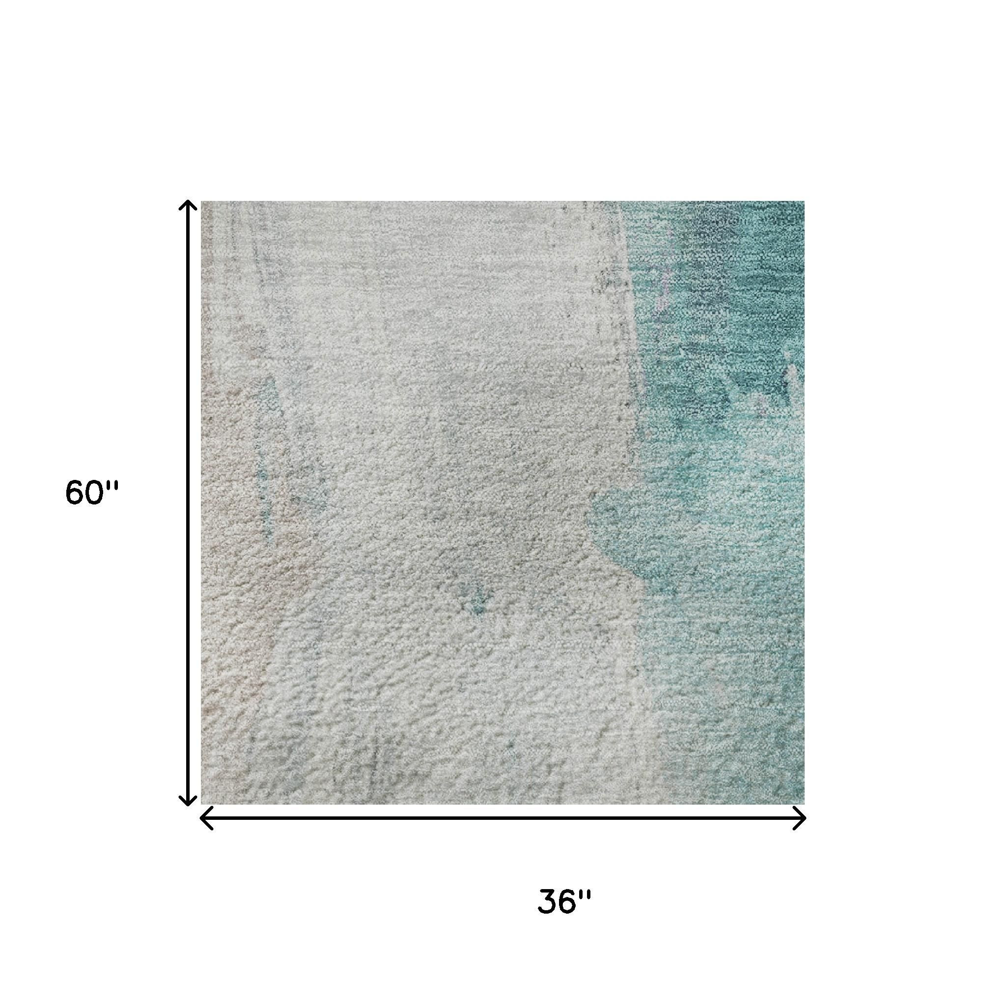 This 3-foot x 5-foot teal khaki and ivory abstract washable area rug with uv protection, is a great way to add warmth to a room. Ideal for spaces with kids and pets, this rug is stain resistant to help repel dirt and spilled liquids. Built to last, this rug crafted from polyester fibers is known for its durability and long lasting appeal. Rugs are a great way to showcase your style, hide imperfections, warm your home and reduce noise. This smaller sized, transitional styled rug is just what you need for your walkway, bedside, in front of door, cabinet, refrigerator, or chair. 36.00-inch h x 60.00-inch w x 0.39-inch d.