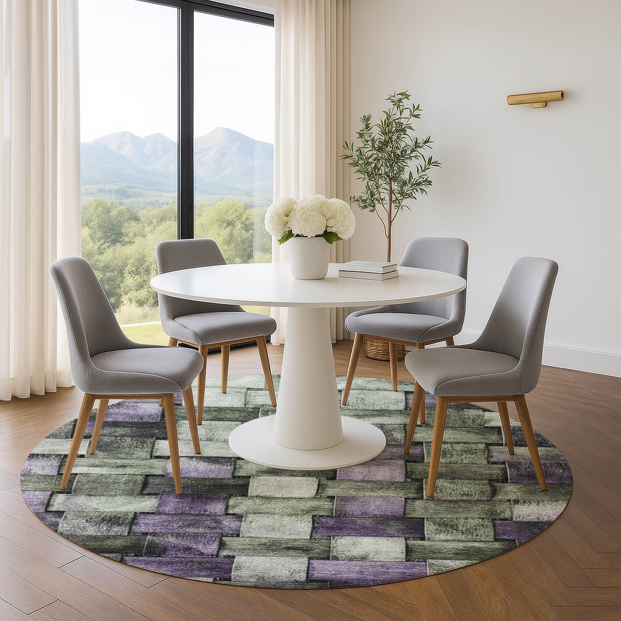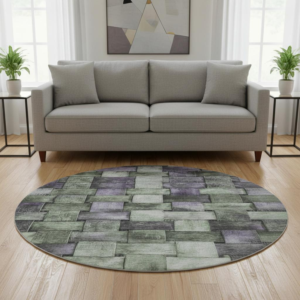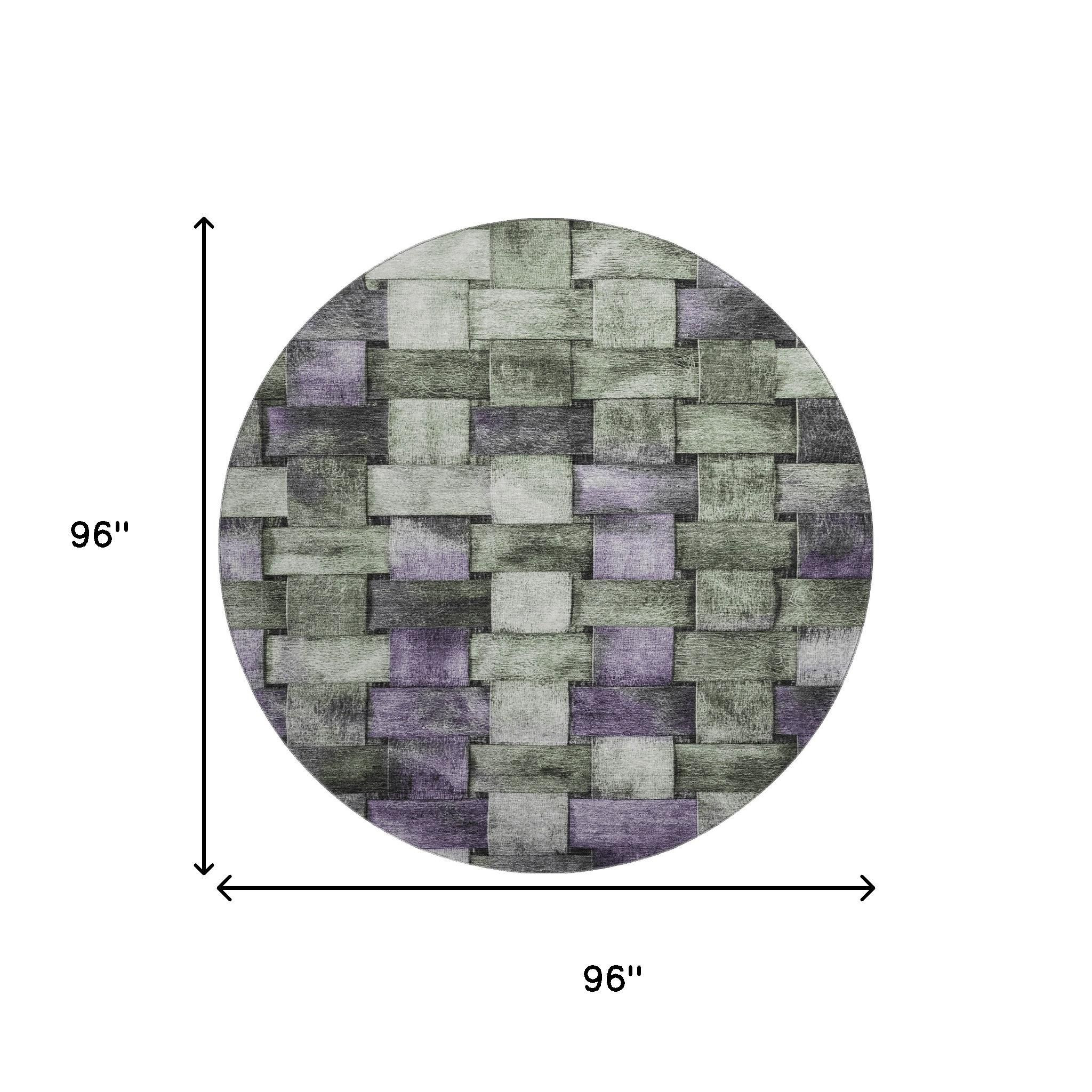 Set an inviting tone in your space with this 8-foot sage and lavender striped washable round rug with uv protection. Ideal for spaces with kids and pets, this rug is stain resistant to help repel dirt and spilled liquids. Built to last, this rug crafted from polyester fibers is known for its durability and long lasting appeal. Rugs are a great way to showcase your style, hide imperfections, warm your home and reduce noise. This larger sized, transitional styled rug is ready to create a focal point or statement piece in your room. 96.00-inch h x 96.00-inch w x 0.39-inch d.