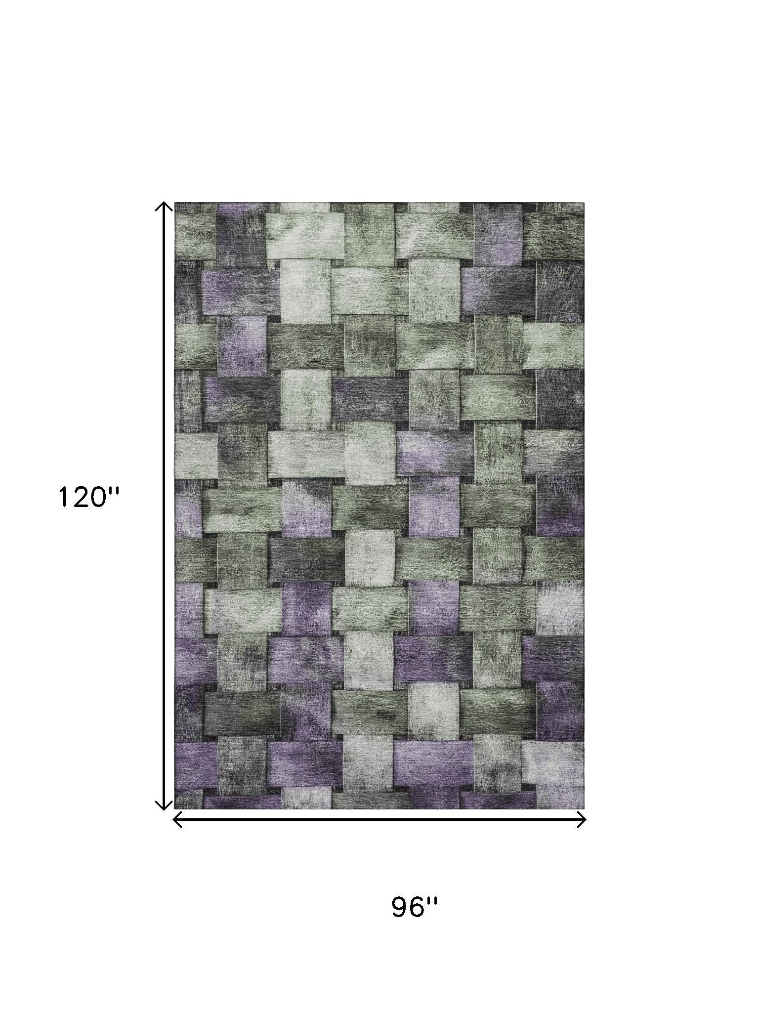 Add some artistry to your room with this 8-foot x 10-foot sage and lavender striped washable area rug with uv protection. Ideal for spaces with kids and pets, this rug is stain resistant to help repel dirt and spilled liquids. Built to last, this rug crafted from polyester fibers is known for its durability and long lasting appeal. Rugs are a great way to showcase your style, hide imperfections, warm your home and reduce noise. This larger sized, transitional styled rug is ready to create a focal point or statement piece in your room. 96.00-inch h x 120.00-inch w x 0.39-inch d.
