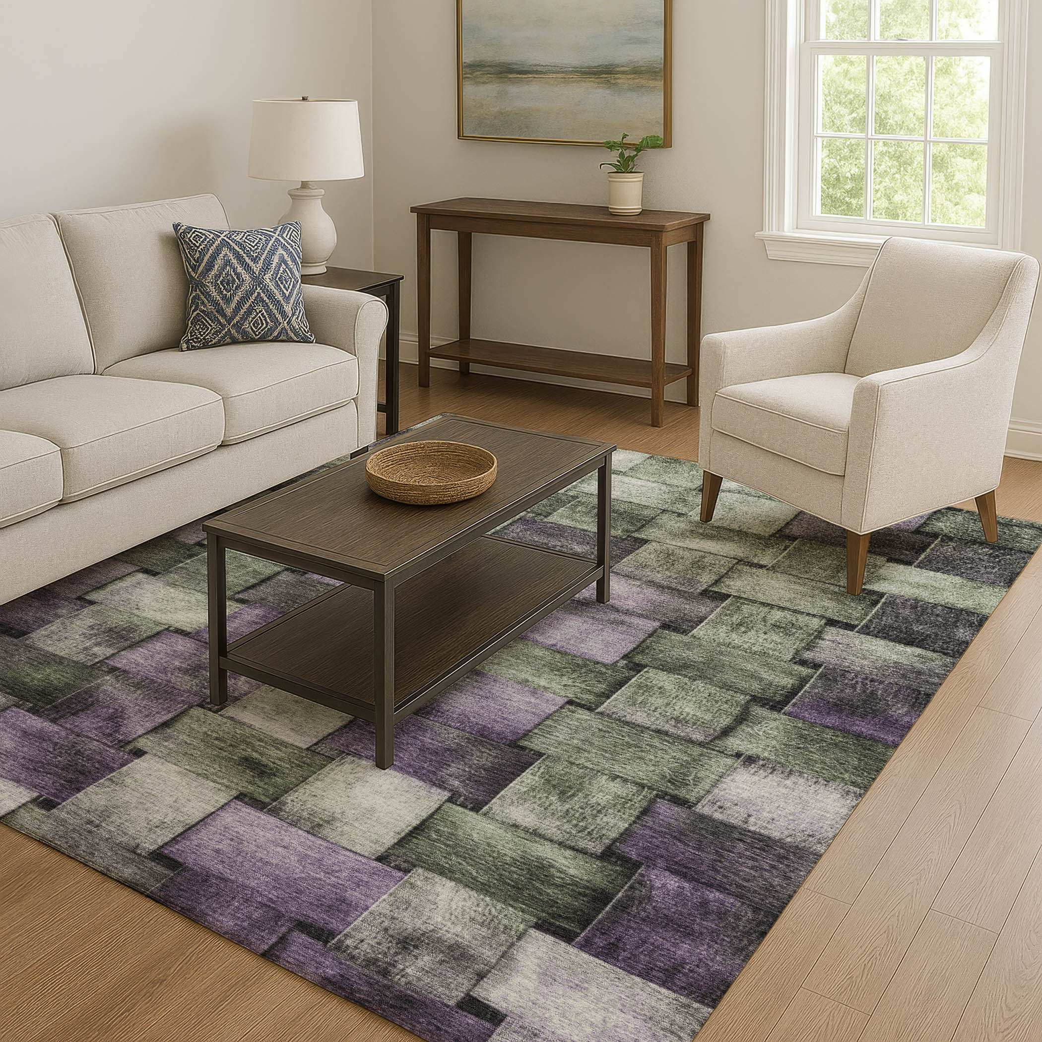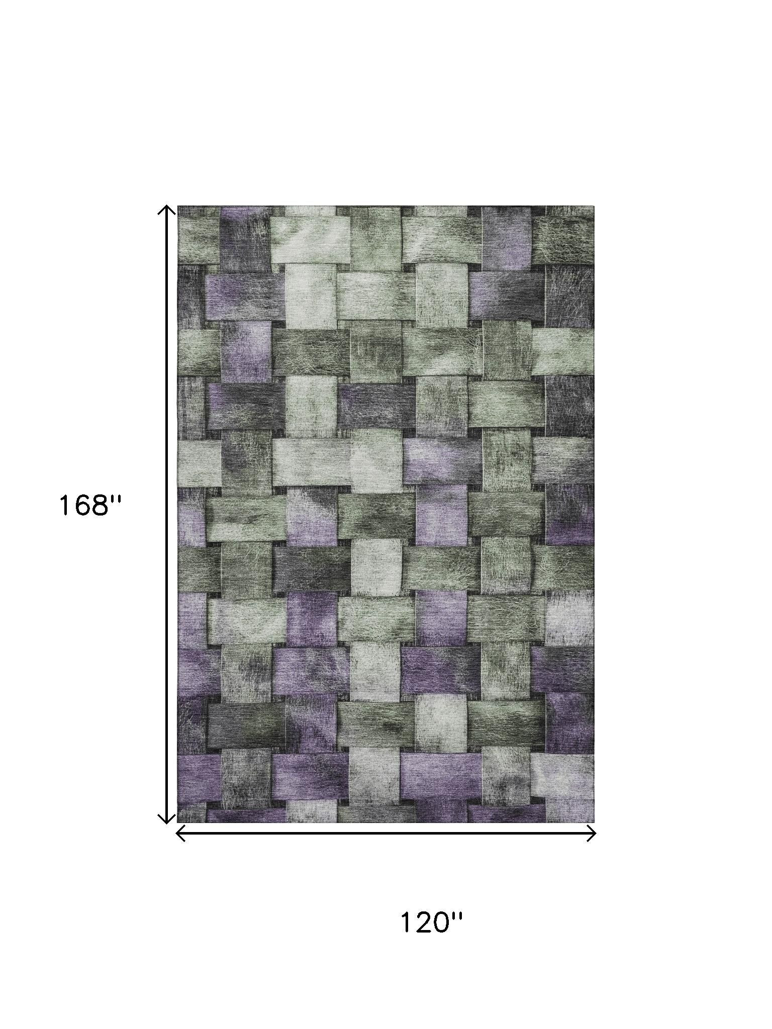 Add some artistry to your room with this 10-foot x 14-foot sage and lavender striped washable area rug with uv protection. Ideal for spaces with kids and pets, this rug is stain resistant to help repel dirt and spilled liquids. Built to last, this rug crafted from polyester fibers is known for its durability and long lasting appeal. Rugs are a great way to showcase your style, hide imperfections, warm your home and reduce noise. This larger sized, transitional styled rug is ready to create a focal point or statement piece in your room. 120.00-inch h x 168.00-inch w x 0.39-inch d.