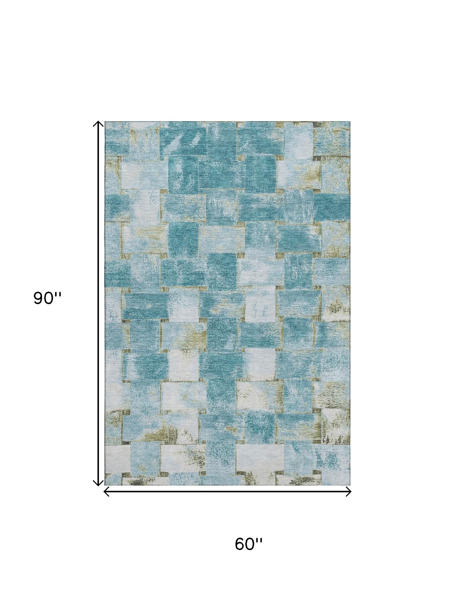 Add great coloration and comfortable texture to your space with this 5-foot x 8-foot teal and khaki striped washable area rug with uv protection. Ideal for spaces with kids and pets, this rug is stain resistant to help repel dirt and spilled liquids. Built to last, this rug crafted from polyester fibers is known for its durability and long lasting appeal. Rugs are a great way to showcase your style, hide imperfections, warm your home and reduce noise. This larger sized, transitional styled rug is ready to create a focal point or statement piece in your room. 60.00-inch h x 90.00-inch w x 0.39-inch d.
