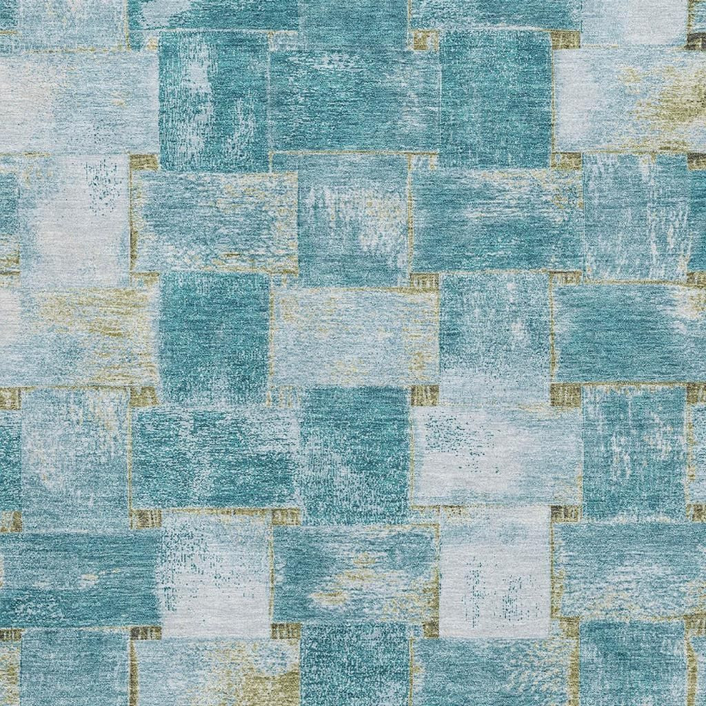 This 8-foot x 10-foot teal and khaki striped washable area rug with uv protection, is a great way to add warmth to a room. Ideal for spaces with kids and pets, this rug is stain resistant to help repel dirt and spilled liquids. Built to last, this rug crafted from polyester fibers is known for its durability and long lasting appeal. Rugs are a great way to showcase your style, hide imperfections, warm your home and reduce noise. This larger sized, transitional styled rug is ready to create a focal point or statement piece in your room. 96.00-inch h x 120.00-inch w x 0.39-inch d.