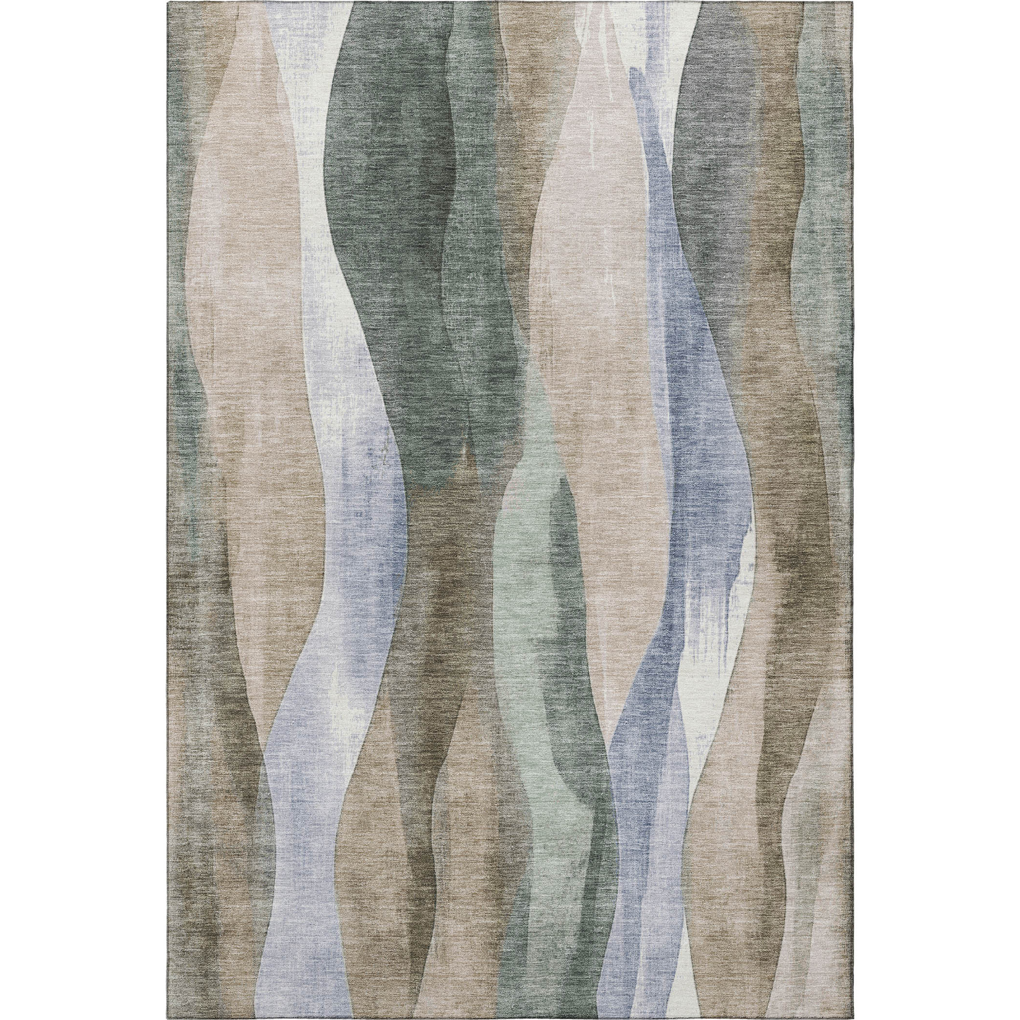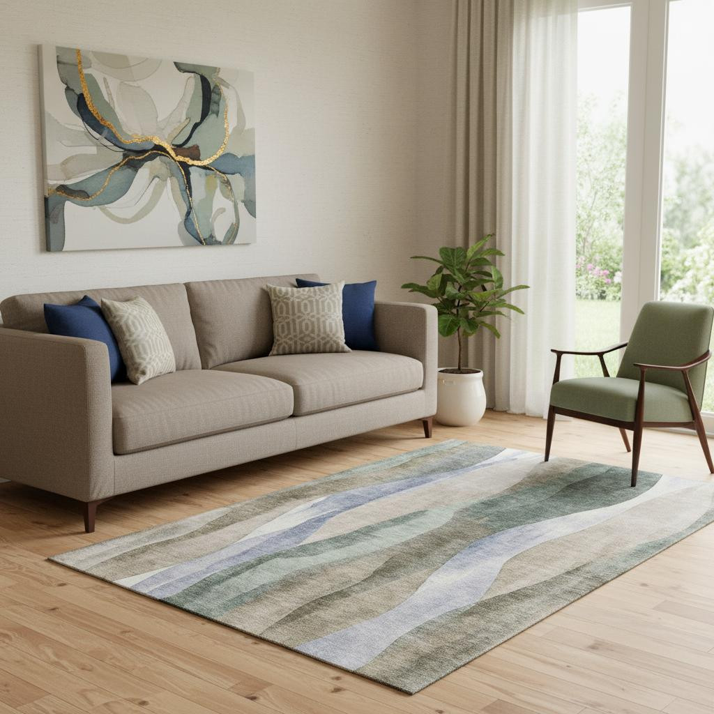 Set an inviting tone in your space with this 5-foot x 8-foot beige blue and ivory abstract washable area rug with uv protection. Ideal for spaces with kids and pets, this rug is stain resistant to help repel dirt and spilled liquids. Built to last, this rug crafted from polyester fibers is known for its durability and long lasting appeal. Rugs are a great way to showcase your style, hide imperfections, warm your home and reduce noise. This larger sized, transitional styled rug is ready to create a focal point or statement piece in your room. 60.00-inch h x 90.00-inch w x 0.39-inch d.