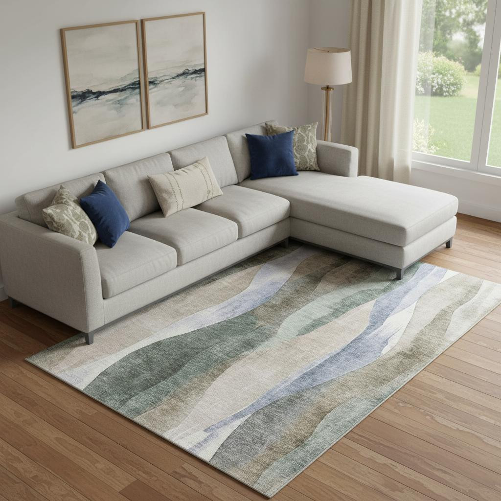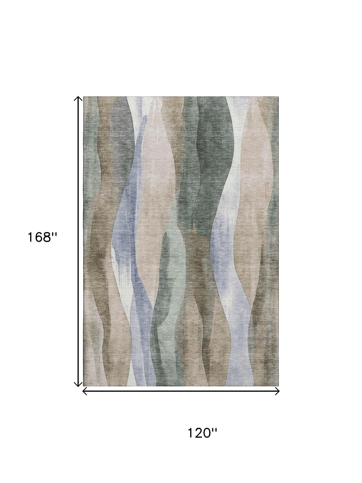 Set an inviting tone in your space with this 10-foot x 14-foot beige blue and ivory abstract washable area rug with uv protection. Ideal for spaces with kids and pets, this rug is stain resistant to help repel dirt and spilled liquids. Built to last, this rug crafted from polyester fibers is known for its durability and long lasting appeal. Rugs are a great way to showcase your style, hide imperfections, warm your home and reduce noise. This larger sized, transitional styled rug is ready to create a focal point or statement piece in your room. 120.00-inch h x 168.00-inch w x 0.39-inch d.