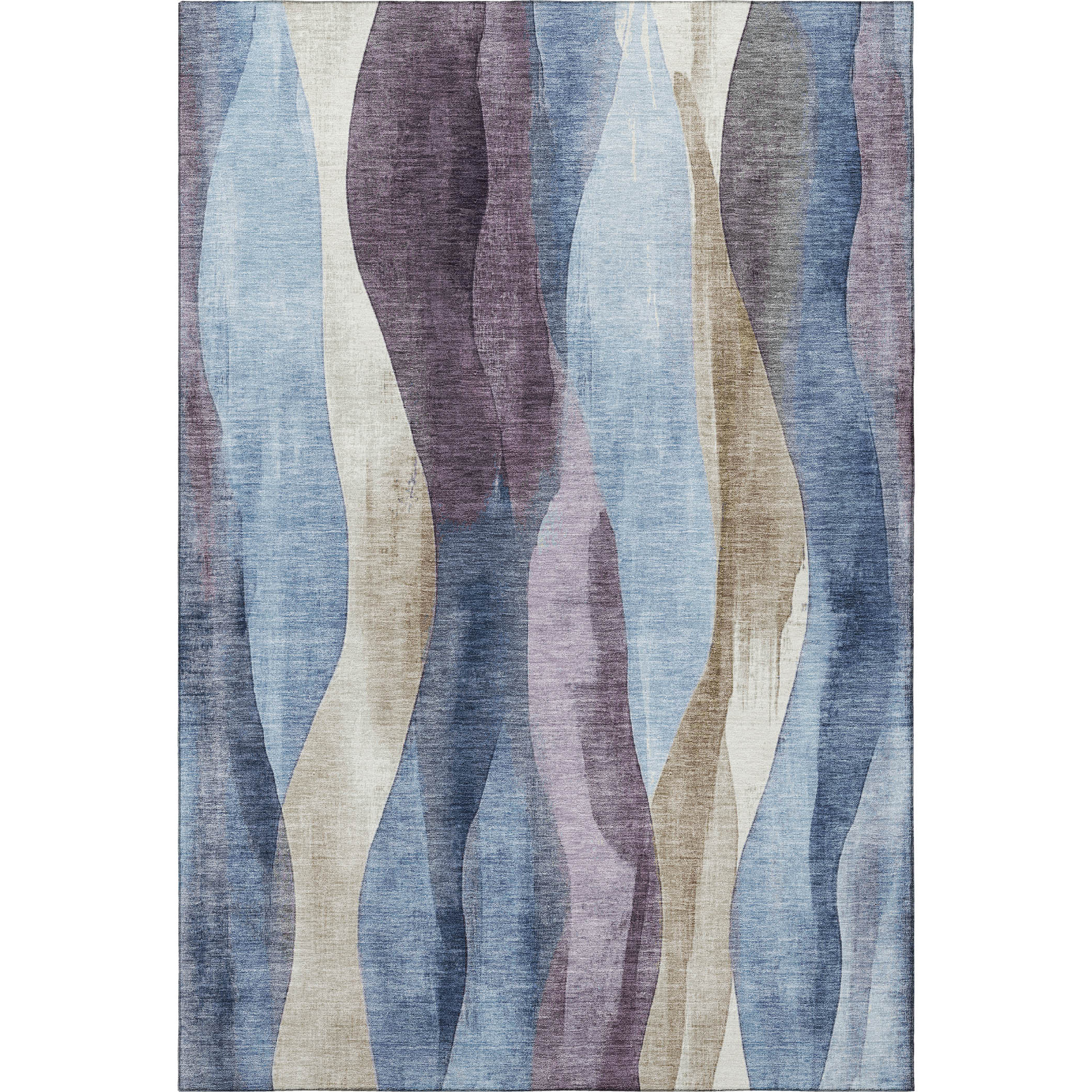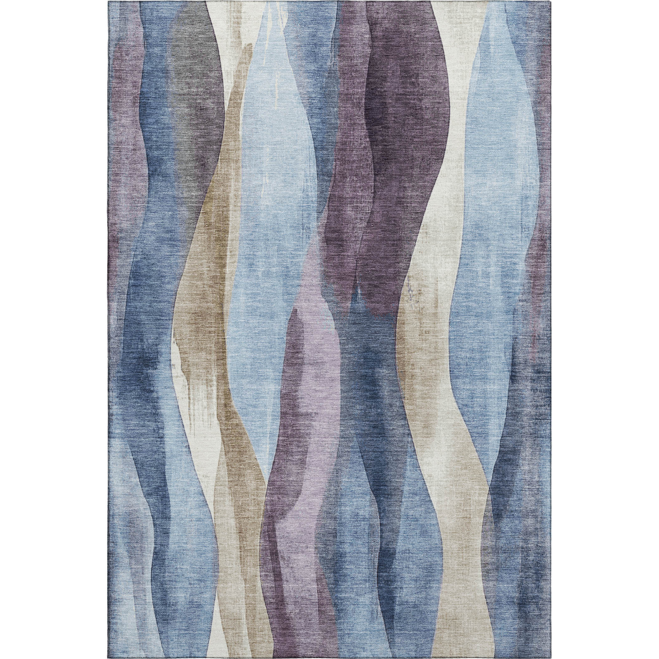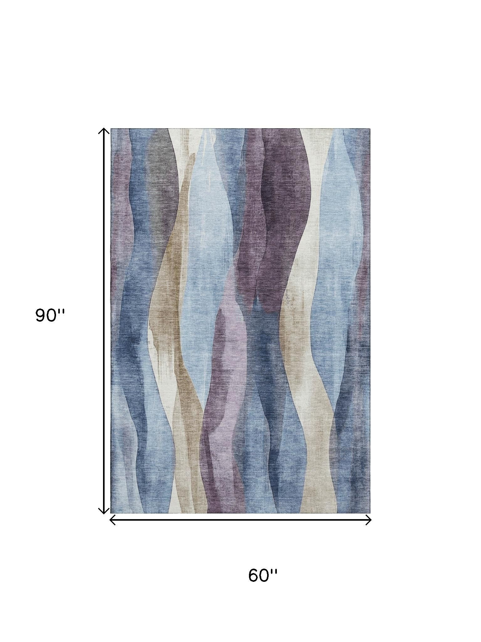 Add great coloration and comfortable texture to your space with this 5-foot x 8-foot denim blue purple and beige abstract washable area rug with uv protection. Ideal for spaces with kids and pets, this rug is stain resistant to help repel dirt and spilled liquids. Built to last, this rug crafted from polyester fibers is known for its durability and long lasting appeal. Rugs are a great way to showcase your style, hide imperfections, warm your home and reduce noise. This larger sized, transitional styled rug is ready to create a focal point or statement piece in your room. 60.00-inch h x 90.00-inch w x 0.39-inch d.