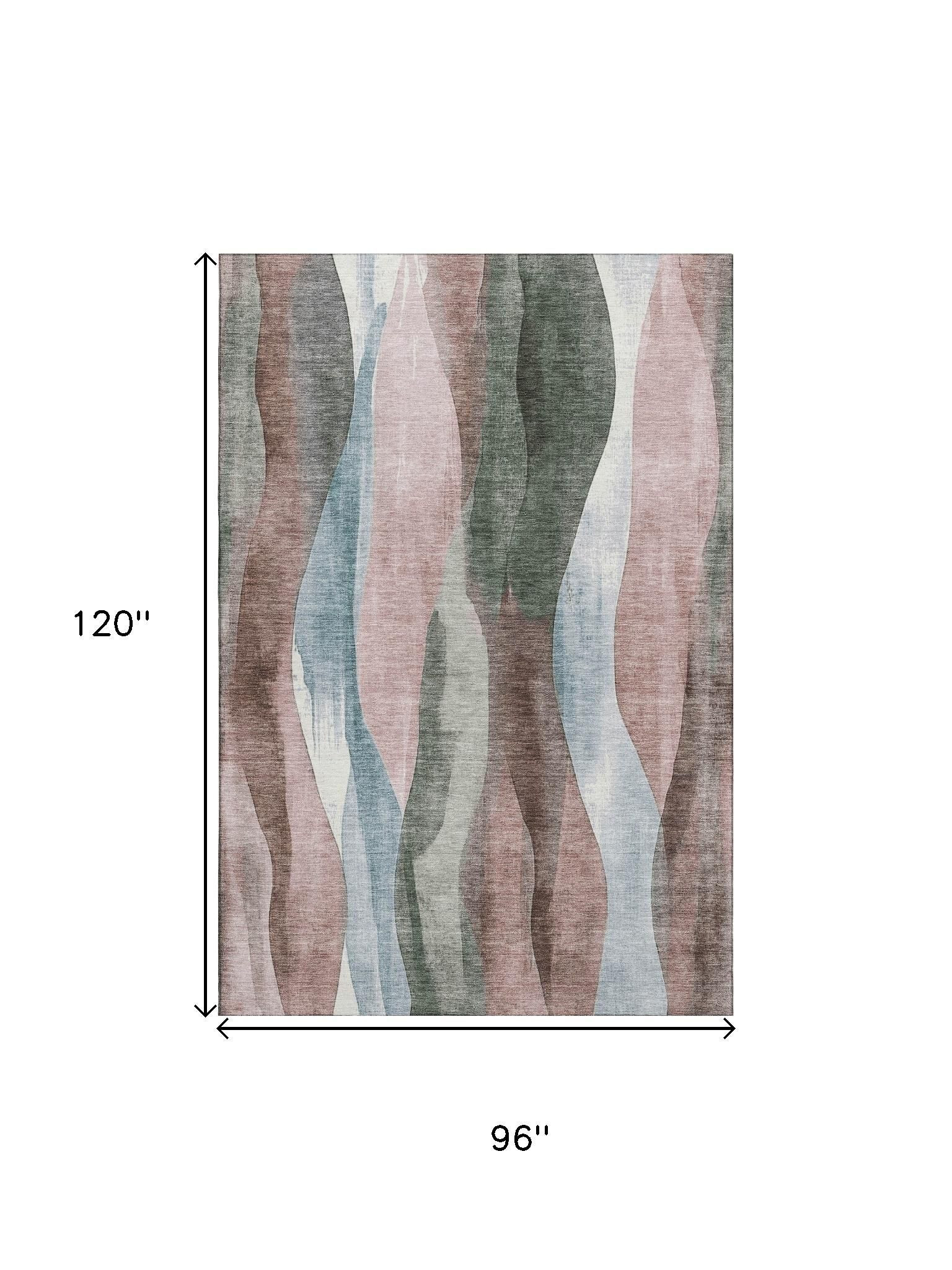 This 8-foot x 10-foot salmon blue and mauve abstract washable area rug with uv protection, is a great way to add warmth to a room. Ideal for spaces with kids and pets, this rug is stain resistant to help repel dirt and spilled liquids. Built to last, this rug crafted from polyester fibers is known for its durability and long lasting appeal. Rugs are a great way to showcase your style, hide imperfections, warm your home and reduce noise. This larger sized, transitional styled rug is ready to create a focal point or statement piece in your room. 96.00-inch h x 120.00-inch w x 0.39-inch d.