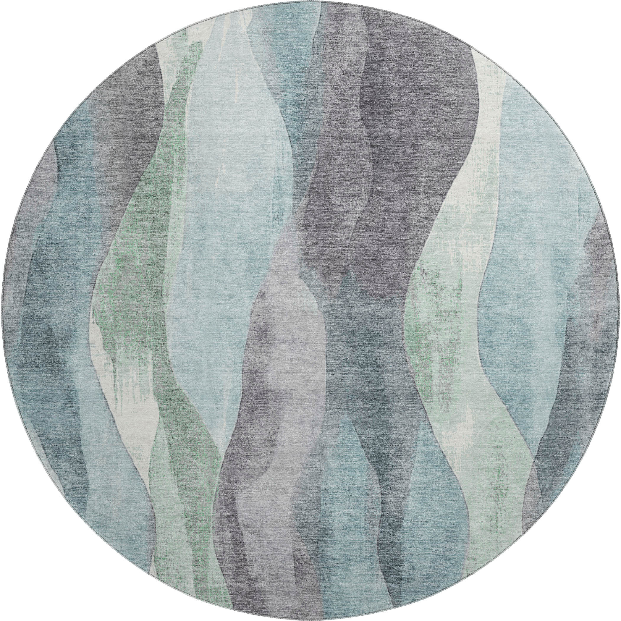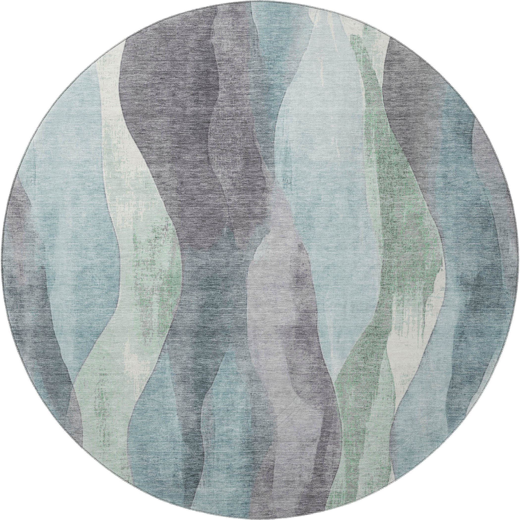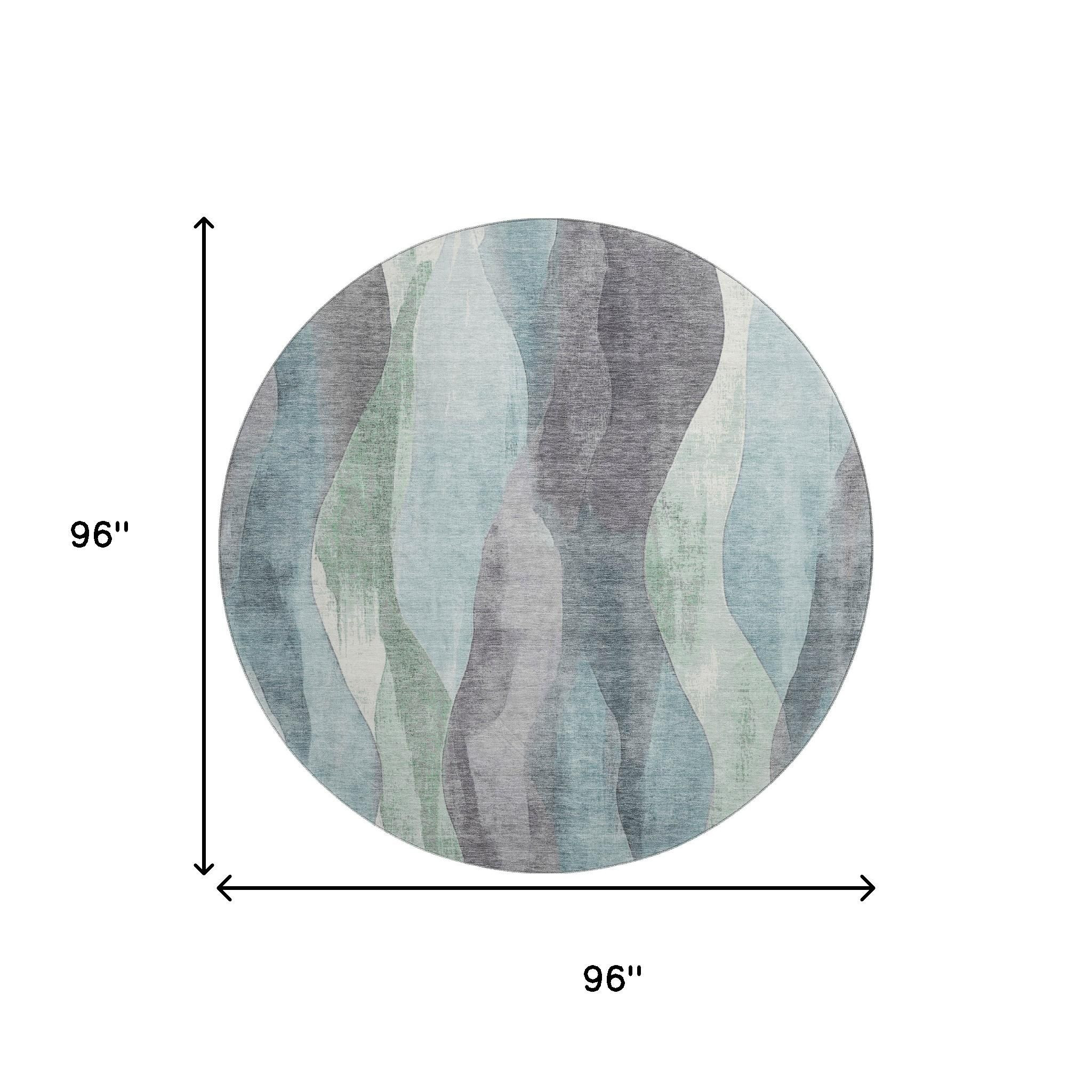 Set an inviting tone in your space with this 8-foot teal plum and ivory abstract washable round rug with uv protection. Ideal for spaces with kids and pets, this rug is stain resistant to help repel dirt and spilled liquids. Built to last, this rug crafted from polyester fibers is known for its durability and long lasting appeal. Rugs are a great way to showcase your style, hide imperfections, warm your home and reduce noise. This larger sized, transitional styled rug is ready to create a focal point or statement piece in your room. 96.00-inch h x 96.00-inch w x 0.39-inch d.
