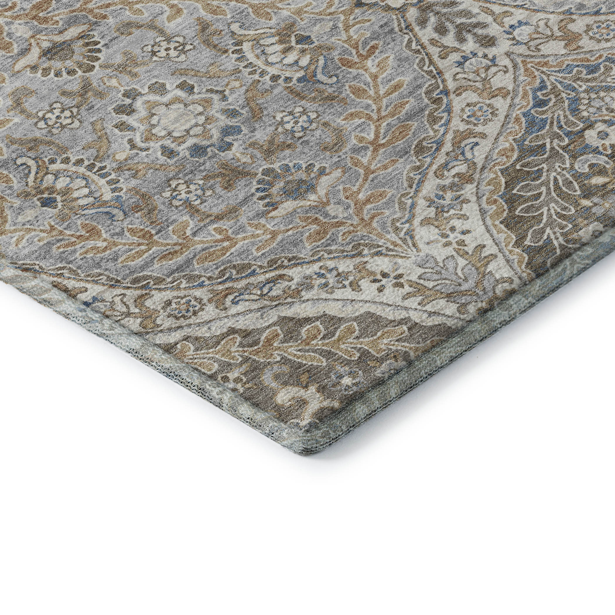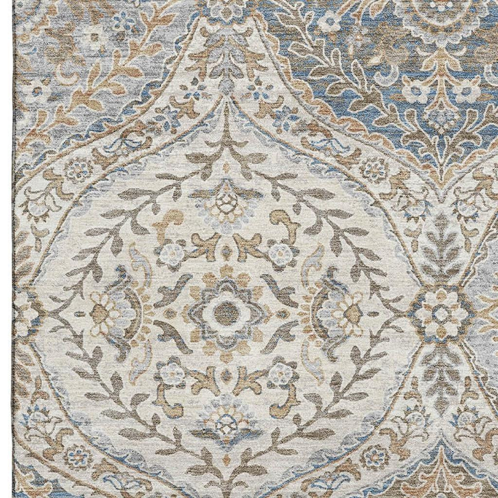 Add some artistry to your room with this 3-foot x 5-foot beige ivory and blue floral washable area rug with uv protection. Ideal for spaces with kids and pets, this rug is stain resistant to help repel dirt and spilled liquids. Built to last, this rug crafted from polyester fibers is known for its durability and long lasting appeal. Rugs are a great way to showcase your style, hide imperfections, warm your home and reduce noise. This smaller sized, traditional styled rug is just what you need for your walkway, bedside, in front of door, cabinet, refrigerator, or chair. 36.00-inch h x 60.00-inch w x 0.39-inch d.