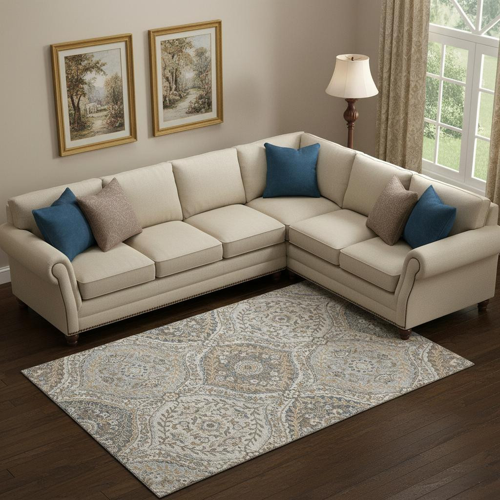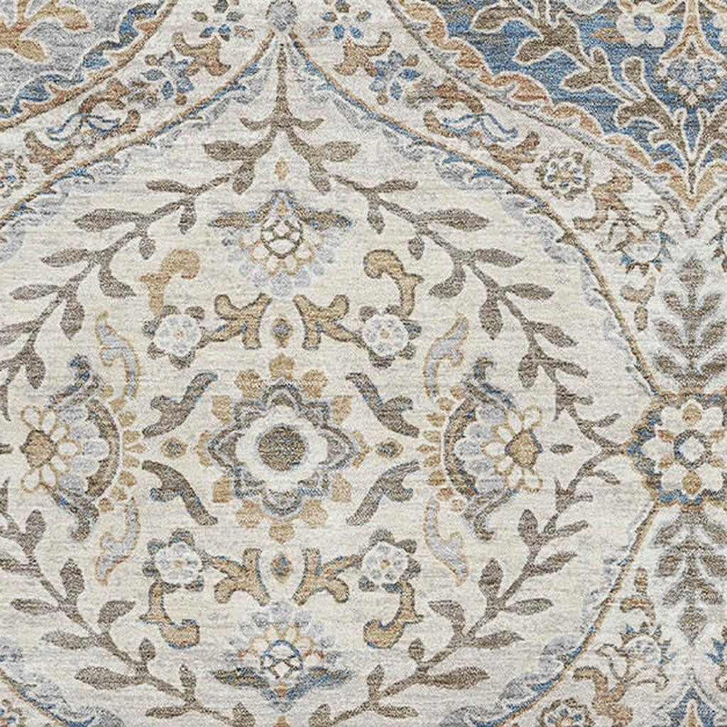 Add great coloration and comfortable texture to your space with this 9-foot x 12-foot beige ivory and blue floral washable area rug with uv protection. Ideal for spaces with kids and pets, this rug is stain resistant to help repel dirt and spilled liquids. Built to last, this rug crafted from polyester fibers is known for its durability and long lasting appeal. Rugs are a great way to showcase your style, hide imperfections, warm your home and reduce noise. This larger sized, traditional styled rug is ready to create a focal point or statement piece in your room. 108.00-inch h x 144.00-inch w x 0.39-inch d.