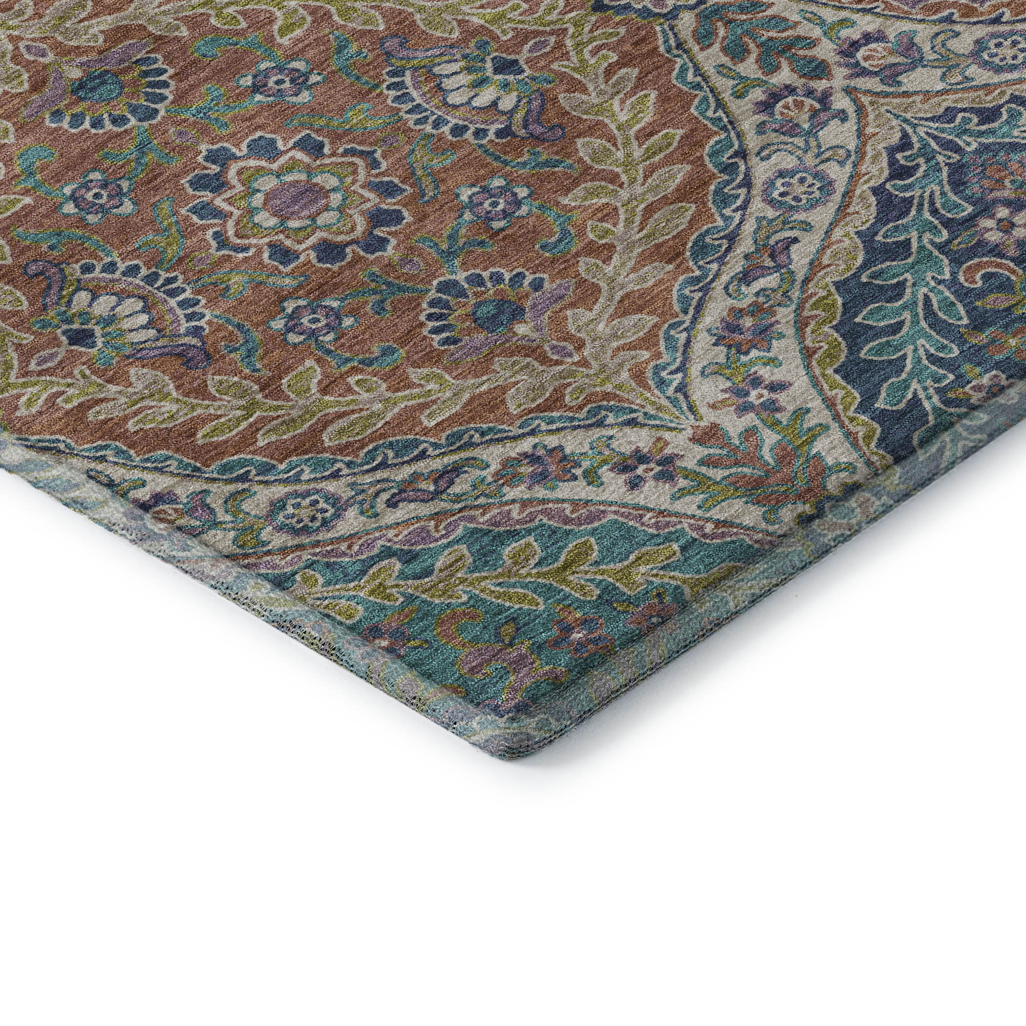 Add some artistry to your room with this 10-foot x 14-foot blue copper and fern green floral washable area rug with uv protection. Ideal for spaces with kids and pets, this rug is stain resistant to help repel dirt and spilled liquids. Built to last, this rug crafted from polyester fibers is known for its durability and long lasting appeal. Rugs are a great way to showcase your style, hide imperfections, warm your home and reduce noise. This larger sized, traditional styled rug is ready to create a focal point or statement piece in your room. 120.00-inch h x 168.00-inch w x 0.39-inch d.