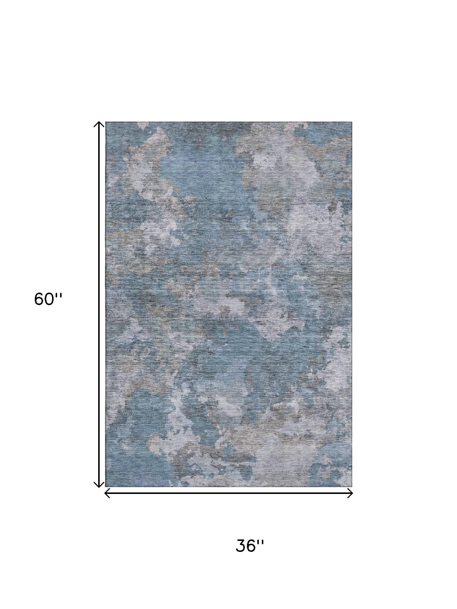 Add some artistry to your room with this 3-foot x 5-foot denim blue and gray abstract washable area rug with uv protection. Ideal for spaces with kids and pets, this rug is stain resistant to help repel dirt and spilled liquids. Built to last, this rug crafted from polyester fibers is known for its durability and long lasting appeal. Rugs are a great way to showcase your style, hide imperfections, warm your home and reduce noise. This smaller sized, transitional styled rug is just what you need for your walkway, bedside, in front of door, cabinet, refrigerator, or chair. 36.00-inch h x 60.00-inch w x 0.39-inch d.