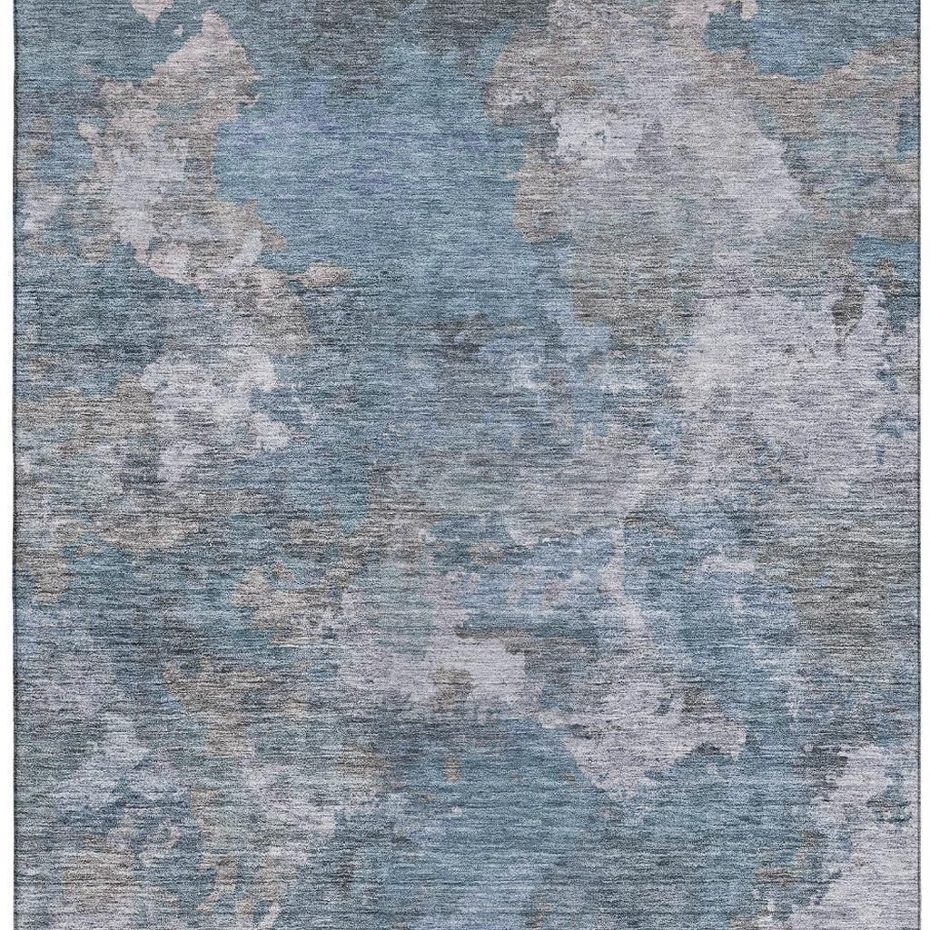Add some artistry to your room with this 10-foot x 14-foot denim blue and gray abstract washable area rug with uv protection. Ideal for spaces with kids and pets, this rug is stain resistant to help repel dirt and spilled liquids. Built to last, this rug crafted from polyester fibers is known for its durability and long lasting appeal. Rugs are a great way to showcase your style, hide imperfections, warm your home and reduce noise. This larger sized, transitional styled rug is ready to create a focal point or statement piece in your room. 120.00-inch h x 168.00-inch w x 0.39-inch d.