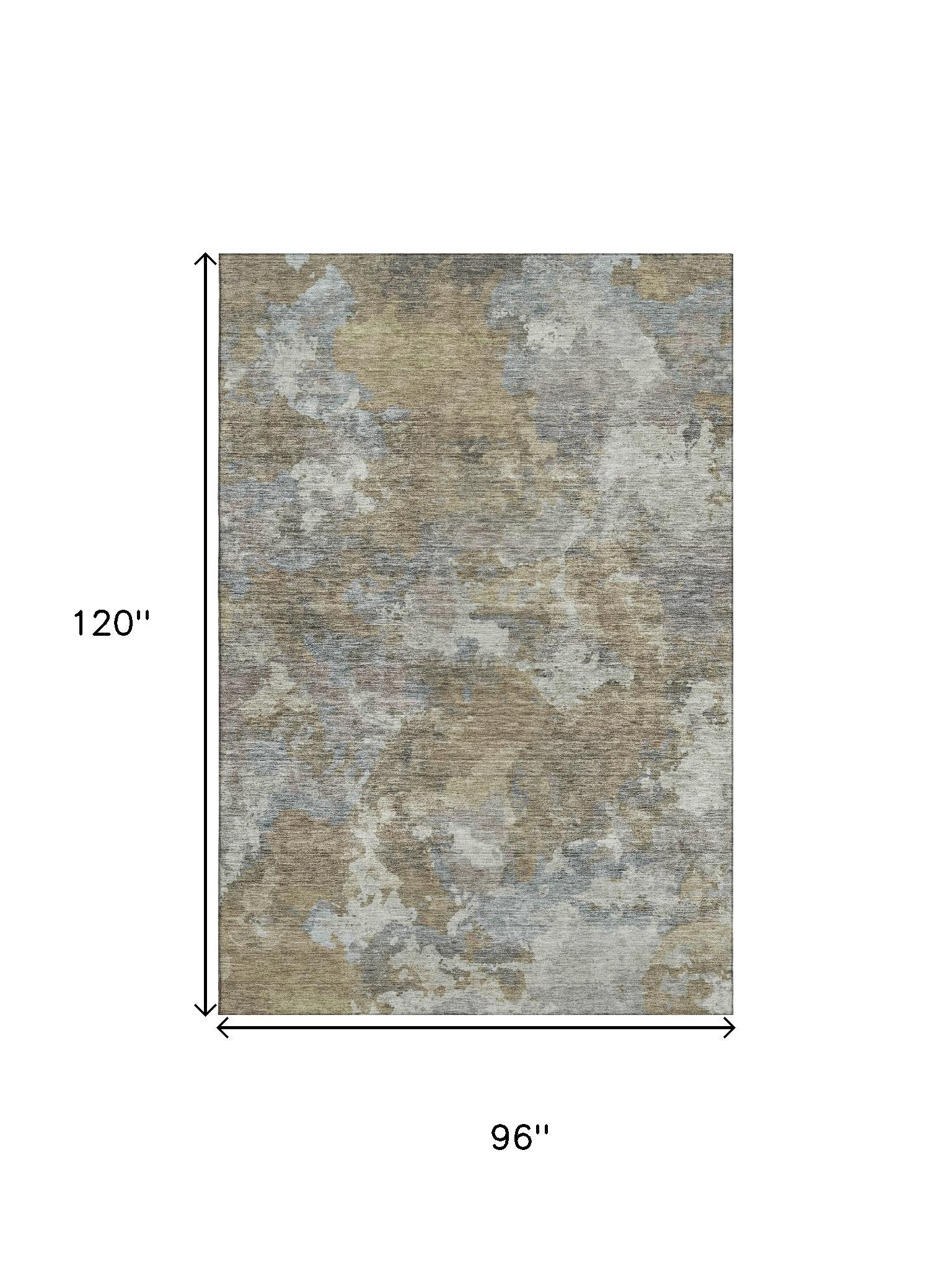 Set an inviting tone in your space with this 8-foot x 10-foot gold and gray abstract washable area rug with uv protection. Ideal for spaces with kids and pets, this rug is stain resistant to help repel dirt and spilled liquids. Built to last, this rug crafted from polyester fibers is known for its durability and long lasting appeal. Rugs are a great way to showcase your style, hide imperfections, warm your home and reduce noise. This larger sized, transitional styled rug is ready to create a focal point or statement piece in your room. 96.00-inch h x 120.00-inch w x 0.39-inch d.