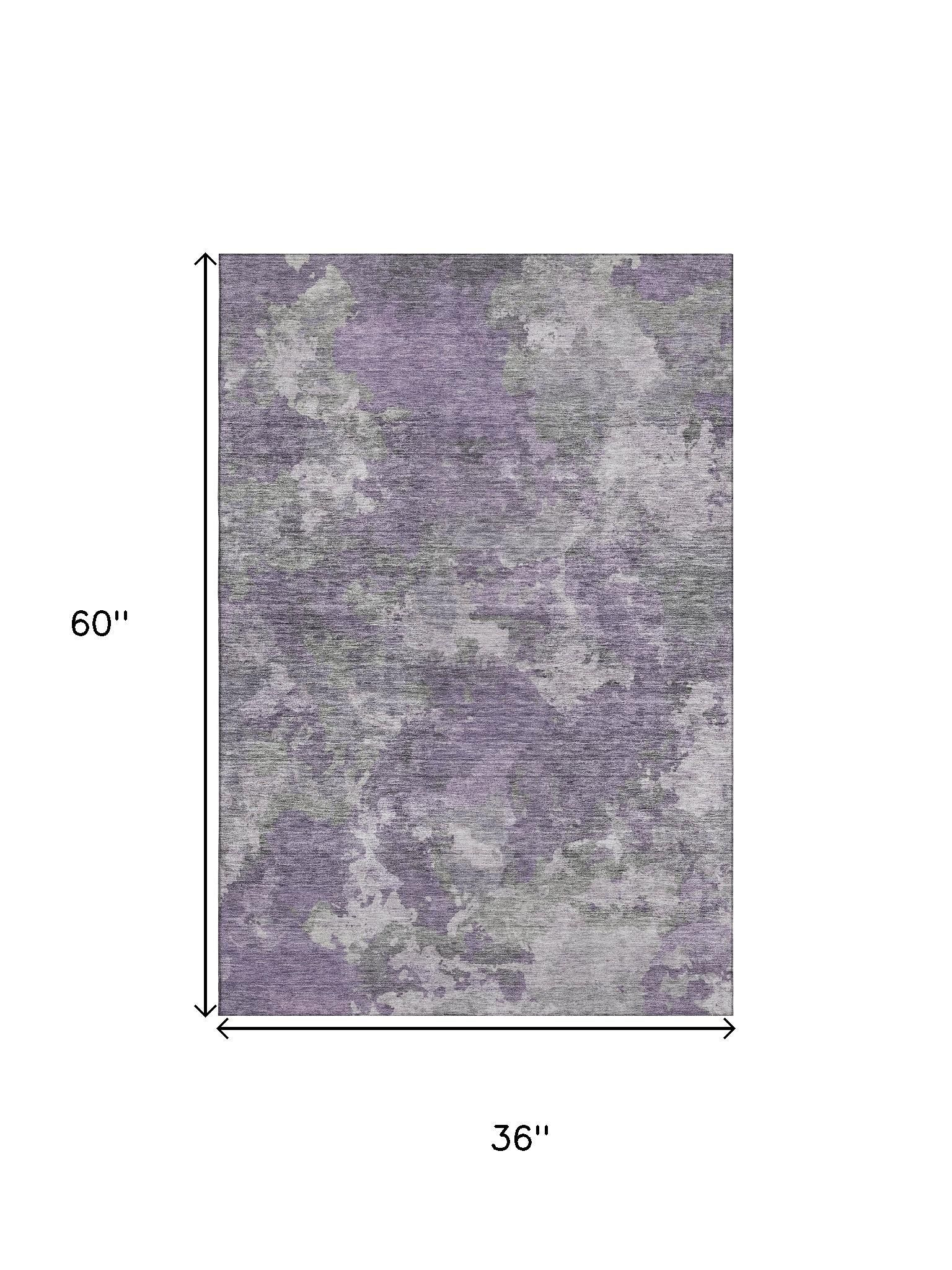This 3-foot x 5-foot purple and gray abstract washable area rug with uv protection, is a great way to add warmth to a room. Ideal for spaces with kids and pets, this rug is stain resistant to help repel dirt and spilled liquids. Built to last, this rug crafted from polyester fibers is known for its durability and long lasting appeal. Rugs are a great way to showcase your style, hide imperfections, warm your home and reduce noise. This smaller sized, transitional styled rug is just what you need for your walkway, bedside, in front of door, cabinet, refrigerator, or chair. 36.00-inch h x 60.00-inch w x 0.39-inch d.