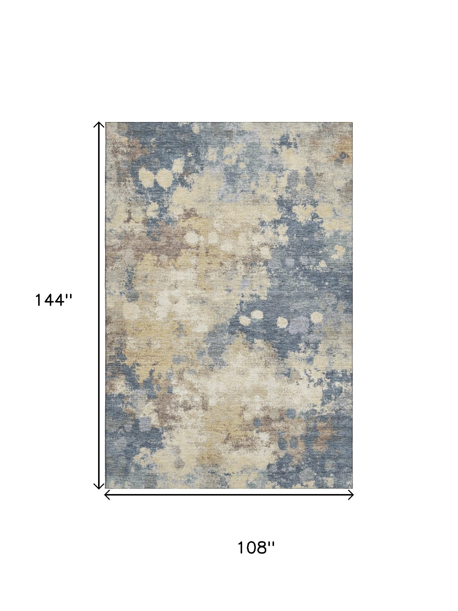 Add some artistry to your room with this 9-foot x 12-foot gold and blue abstract washable area rug with uv protection. Ideal for spaces with kids and pets, this rug is stain resistant to help repel dirt and spilled liquids. Built to last, this rug crafted from polyester fibers is known for its durability and long lasting appeal. Rugs are a great way to showcase your style, hide imperfections, warm your home and reduce noise. This larger sized, transitional styled rug is ready to create a focal point or statement piece in your room. 108.00-inch h x 144.00-inch w x 0.39-inch d.