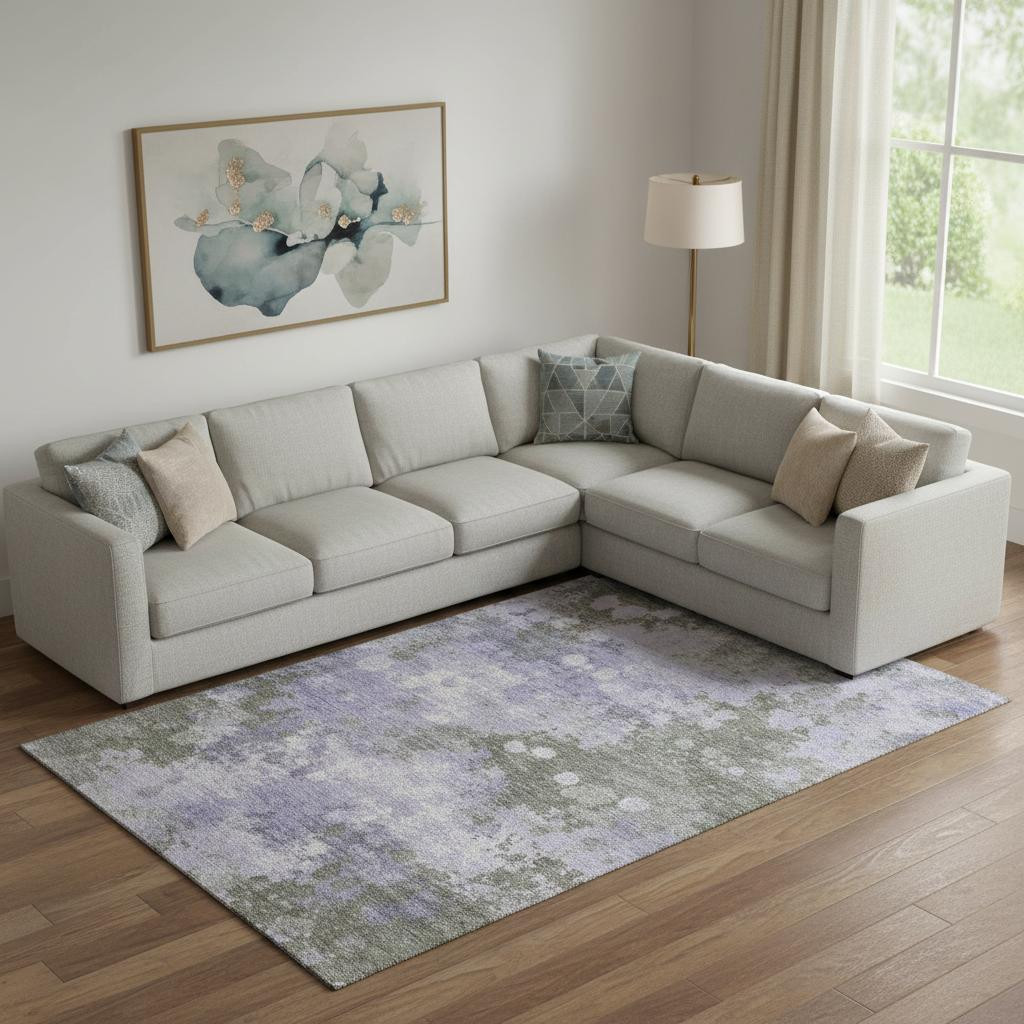 Add great coloration and comfortable texture to your space with this 9-foot x 12-foot lavender and taupe abstract washable area rug with uv protection. Ideal for spaces with kids and pets, this rug is stain resistant to help repel dirt and spilled liquids. Built to last, this rug crafted from polyester fibers is known for its durability and long lasting appeal. Rugs are a great way to showcase your style, hide imperfections, warm your home and reduce noise. This larger sized, transitional styled rug is ready to create a focal point or statement piece in your room. 108.00-inch h x 144.00-inch w x 0.39-inch d.