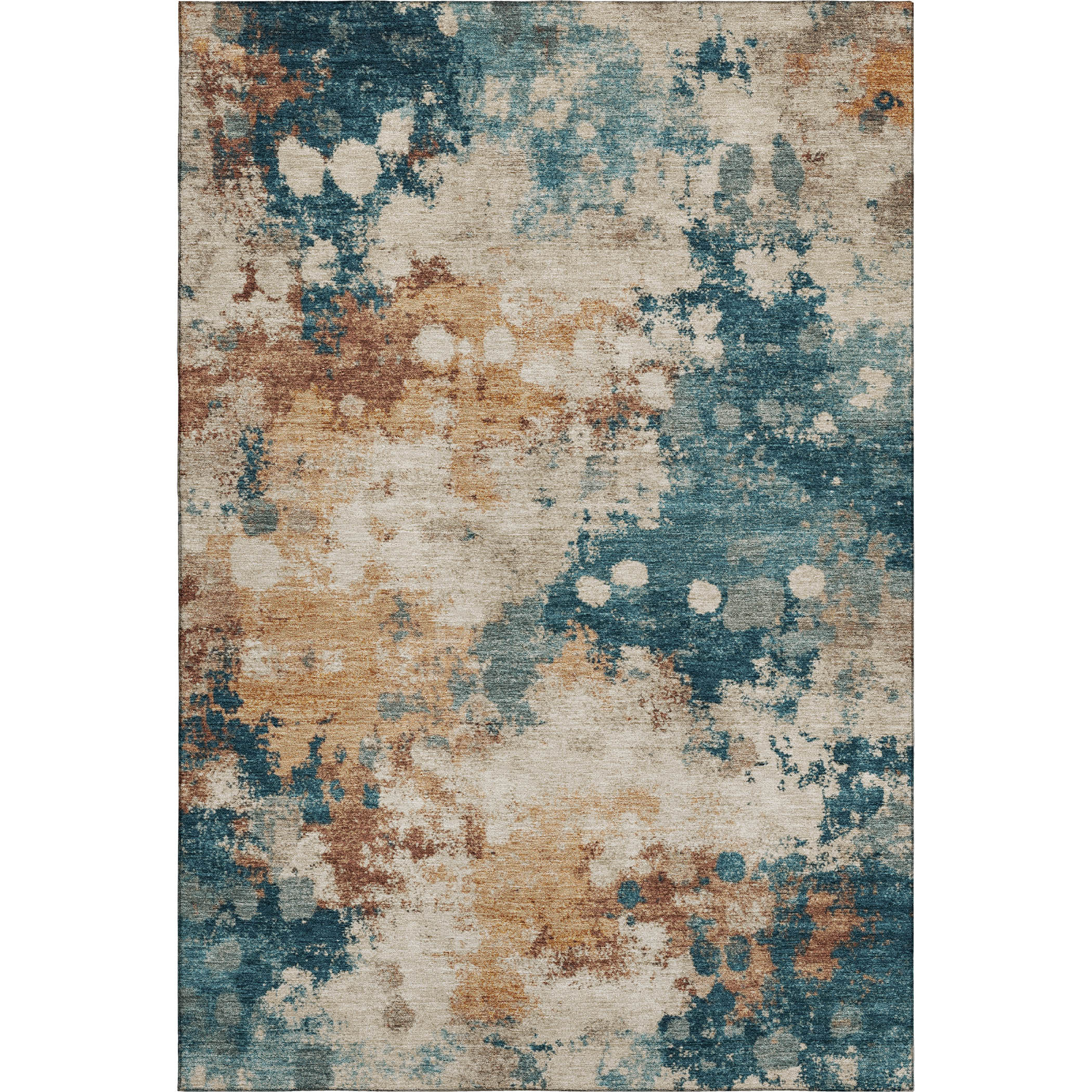 Set an inviting tone in your space with this 5-foot x 8-foot beige copper and blue abstract washable area rug with uv protection. Ideal for spaces with kids and pets, this rug is stain resistant to help repel dirt and spilled liquids. Built to last, this rug crafted from polyester fibers is known for its durability and long lasting appeal. Rugs are a great way to showcase your style, hide imperfections, warm your home and reduce noise. This larger sized, transitional styled rug is ready to create a focal point or statement piece in your room. 60.00-inch h x 90.00-inch w x 0.39-inch d.