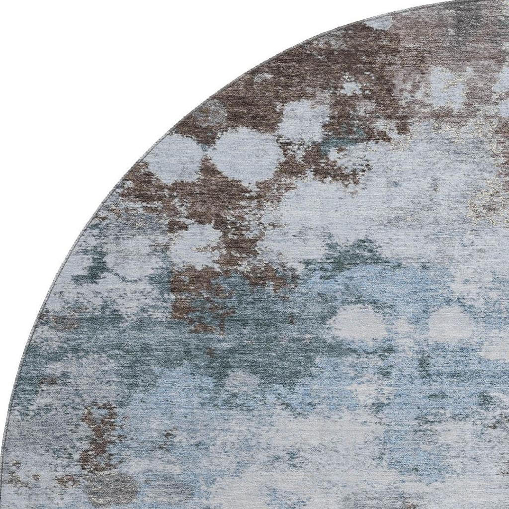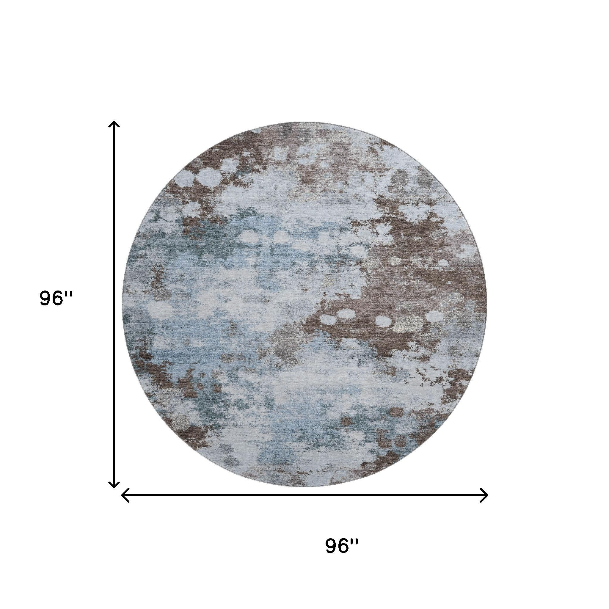Add some artistry to your room with this 8-foot sky blue and brown abstract washable round rug with uv protection. Ideal for spaces with kids and pets, this rug is stain resistant to help repel dirt and spilled liquids. Built to last, this rug crafted from polyester fibers is known for its durability and long lasting appeal. Rugs are a great way to showcase your style, hide imperfections, warm your home and reduce noise. This larger sized, transitional styled rug is ready to create a focal point or statement piece in your room. 96.00-inch h x 96.00-inch w x 0.39-inch d.