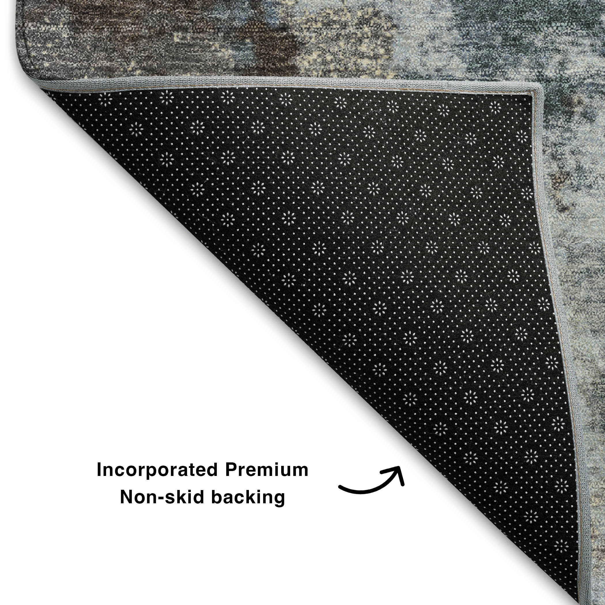 Add great coloration and comfortable texture to your space with this 9-foot x 12-foot sky blue and brown abstract washable area rug with uv protection. Ideal for spaces with kids and pets, this rug is stain resistant to help repel dirt and spilled liquids. Built to last, this rug crafted from polyester fibers is known for its durability and long lasting appeal. Rugs are a great way to showcase your style, hide imperfections, warm your home and reduce noise. This larger sized, transitional styled rug is ready to create a focal point or statement piece in your room. 108.00-inch h x 144.00-inch w x 0.39-inch d.