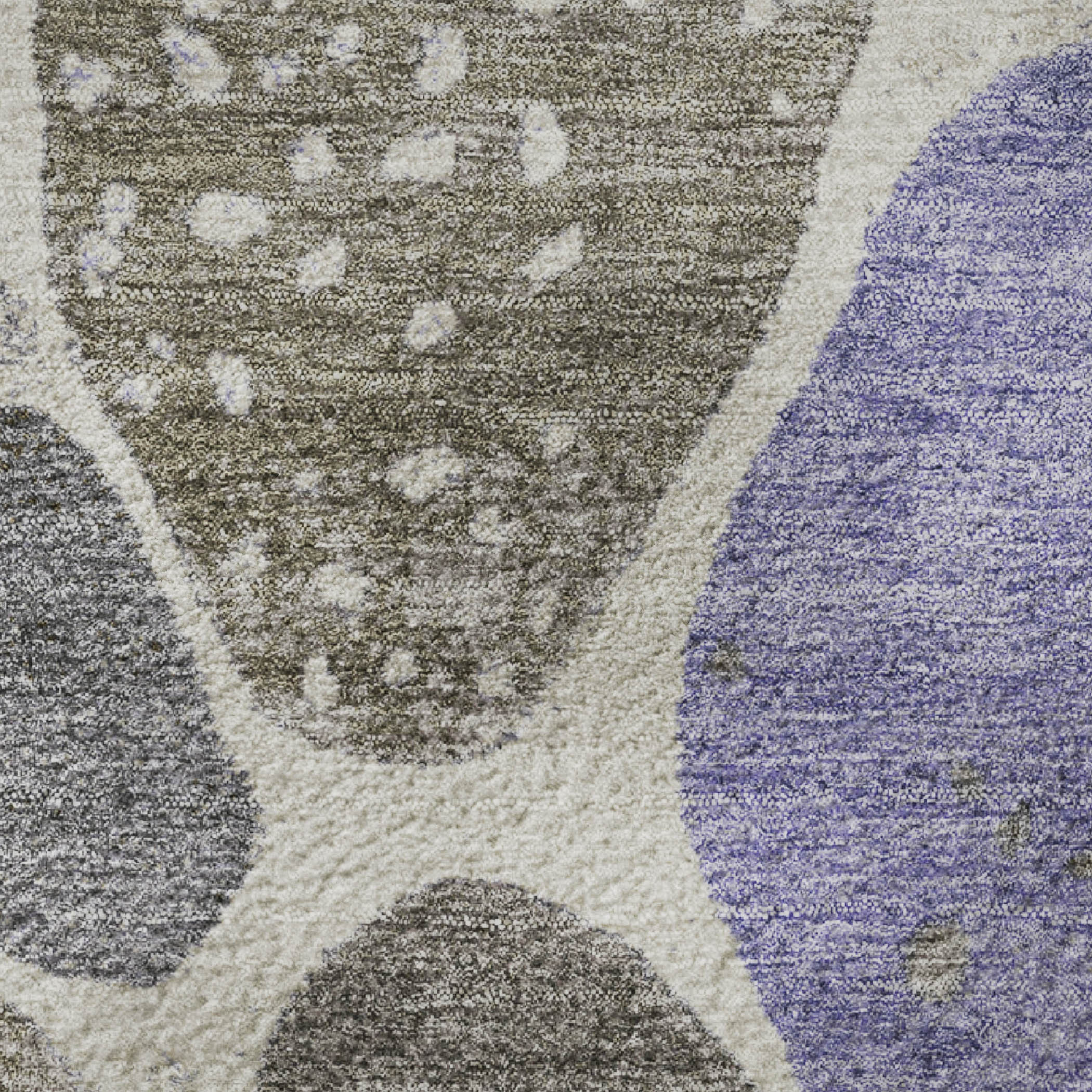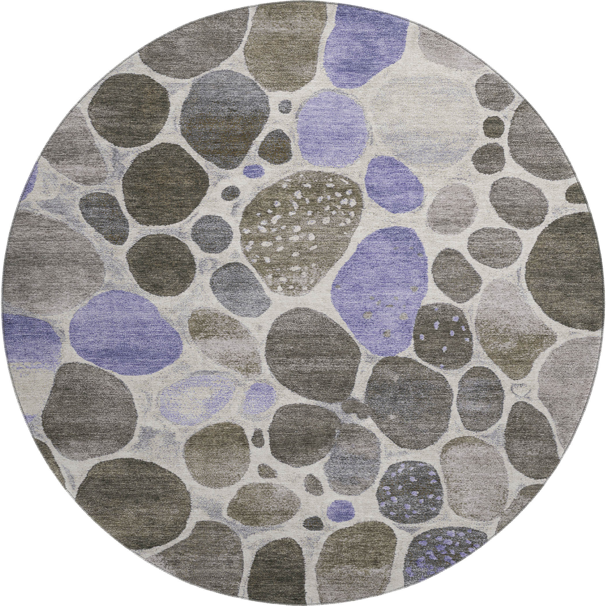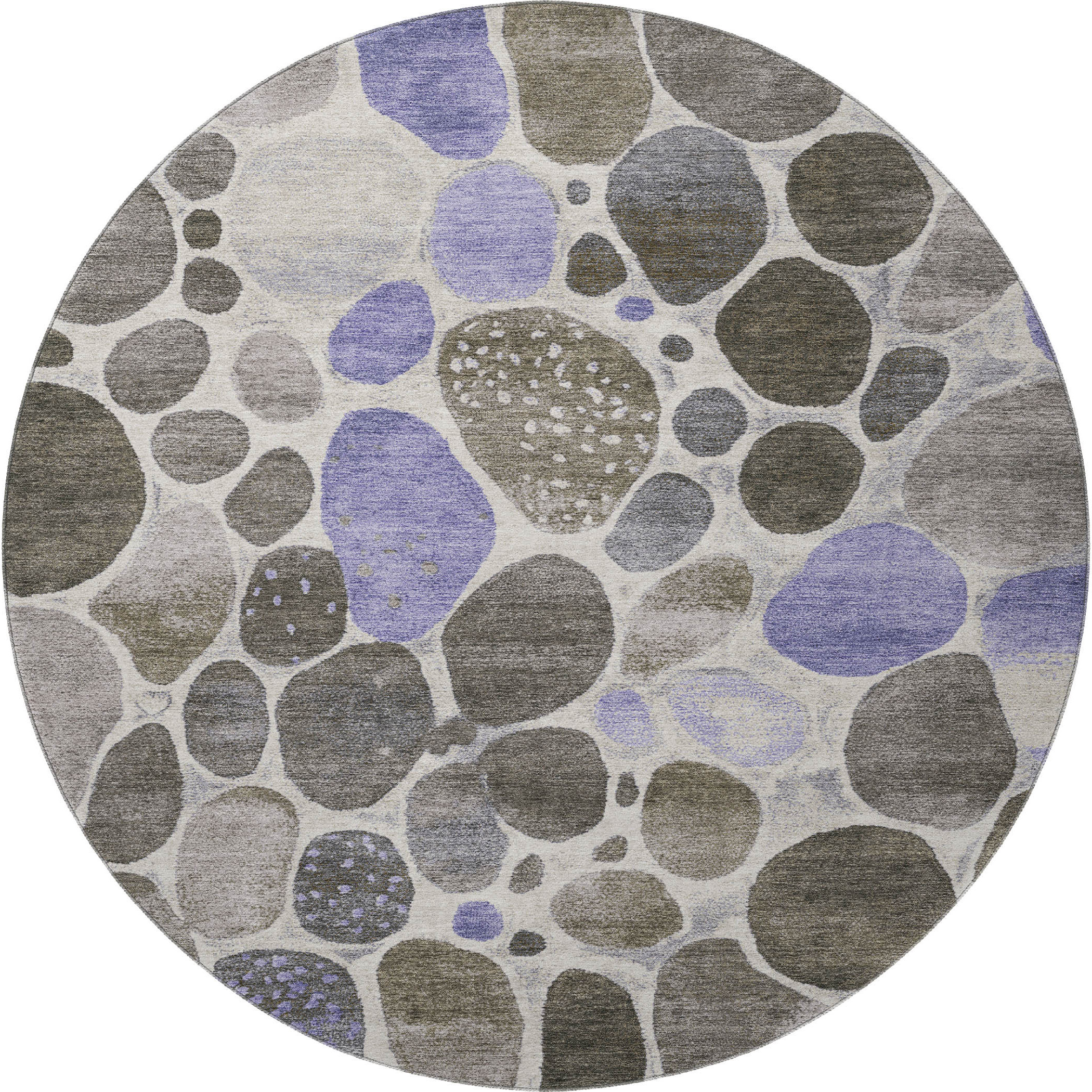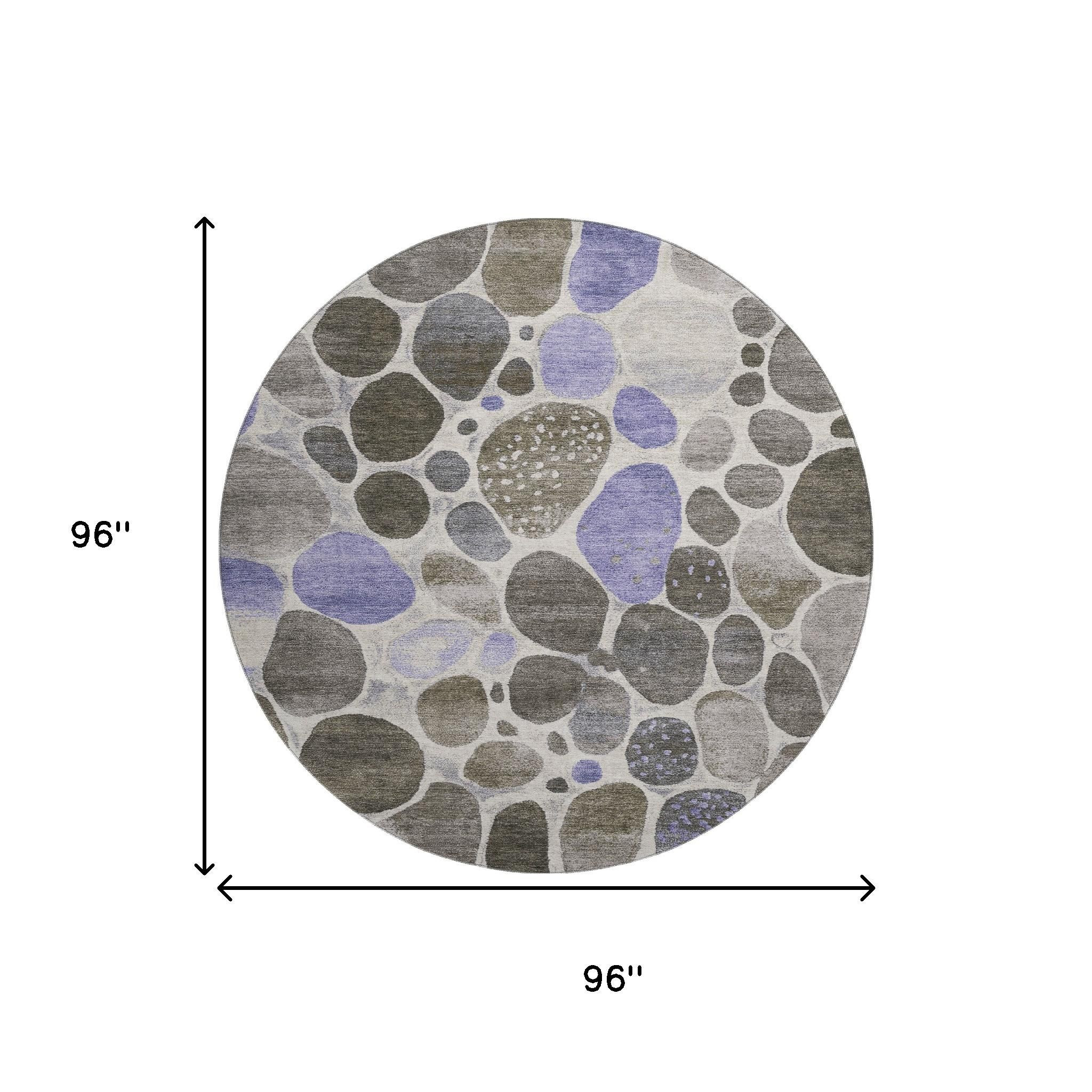 Set an inviting tone in your space with this 8-foot chocolate ivory and lavender geometric washable round rug with uv protection. Ideal for spaces with kids and pets, this rug is stain resistant to help repel dirt and spilled liquids. Built to last, this rug crafted from polyester fibers is known for its durability and long lasting appeal. Rugs are a great way to showcase your style, hide imperfections, warm your home and reduce noise. This larger sized, transitional styled rug is ready to create a focal point or statement piece in your room. 96.00-inch h x 96.00-inch w x 0.39-inch d.