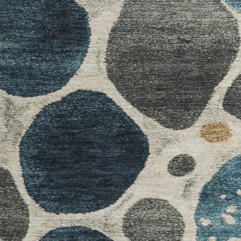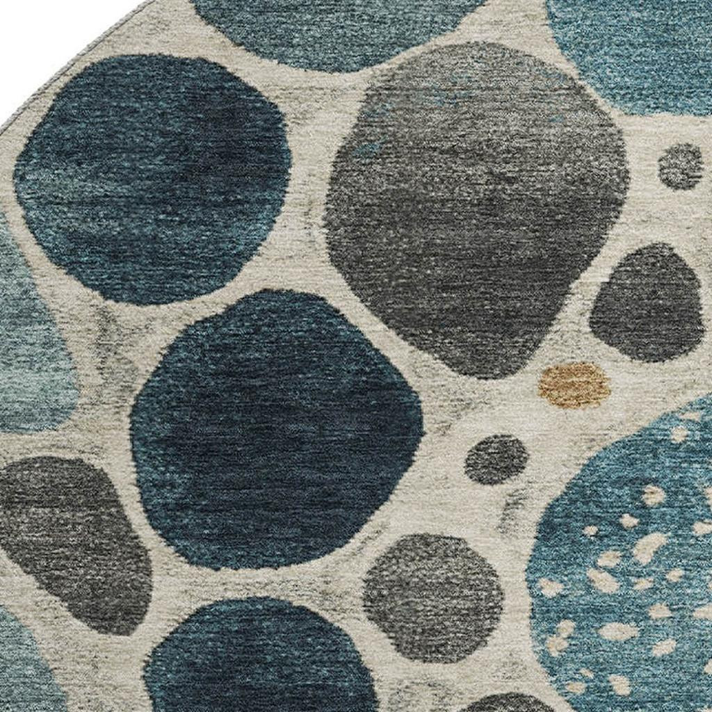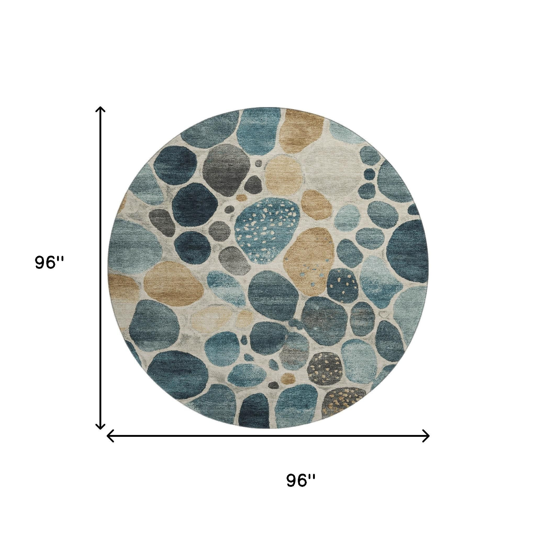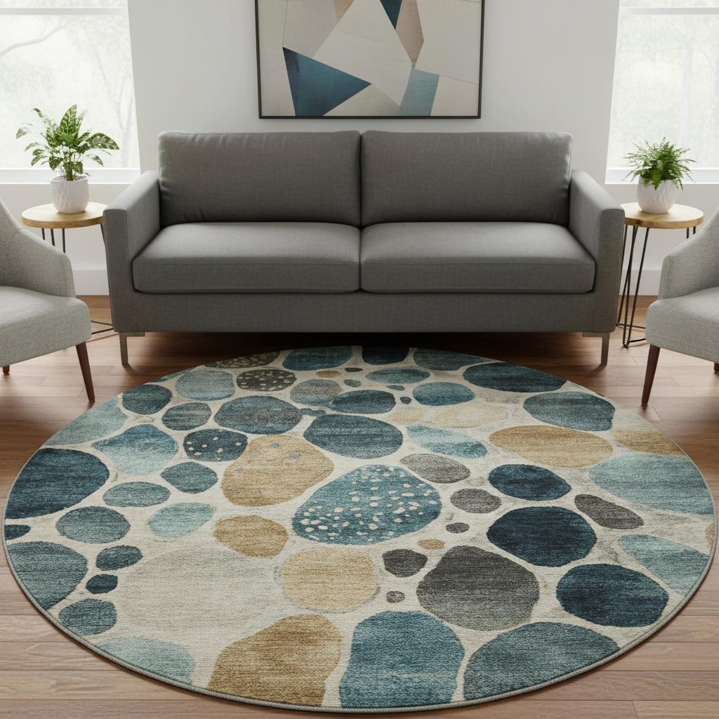 Add great coloration and comfortable texture to your space with this 8-foot teal beige and ivory geometric washable round rug with uv protection. Ideal for spaces with kids and pets, this rug is stain resistant to help repel dirt and spilled liquids. Built to last, this rug crafted from polyester fibers is known for its durability and long lasting appeal. Rugs are a great way to showcase your style, hide imperfections, warm your home and reduce noise. This larger sized, transitional styled rug is ready to create a focal point or statement piece in your room. 96.00-inch h x 96.00-inch w x 0.39-inch d.