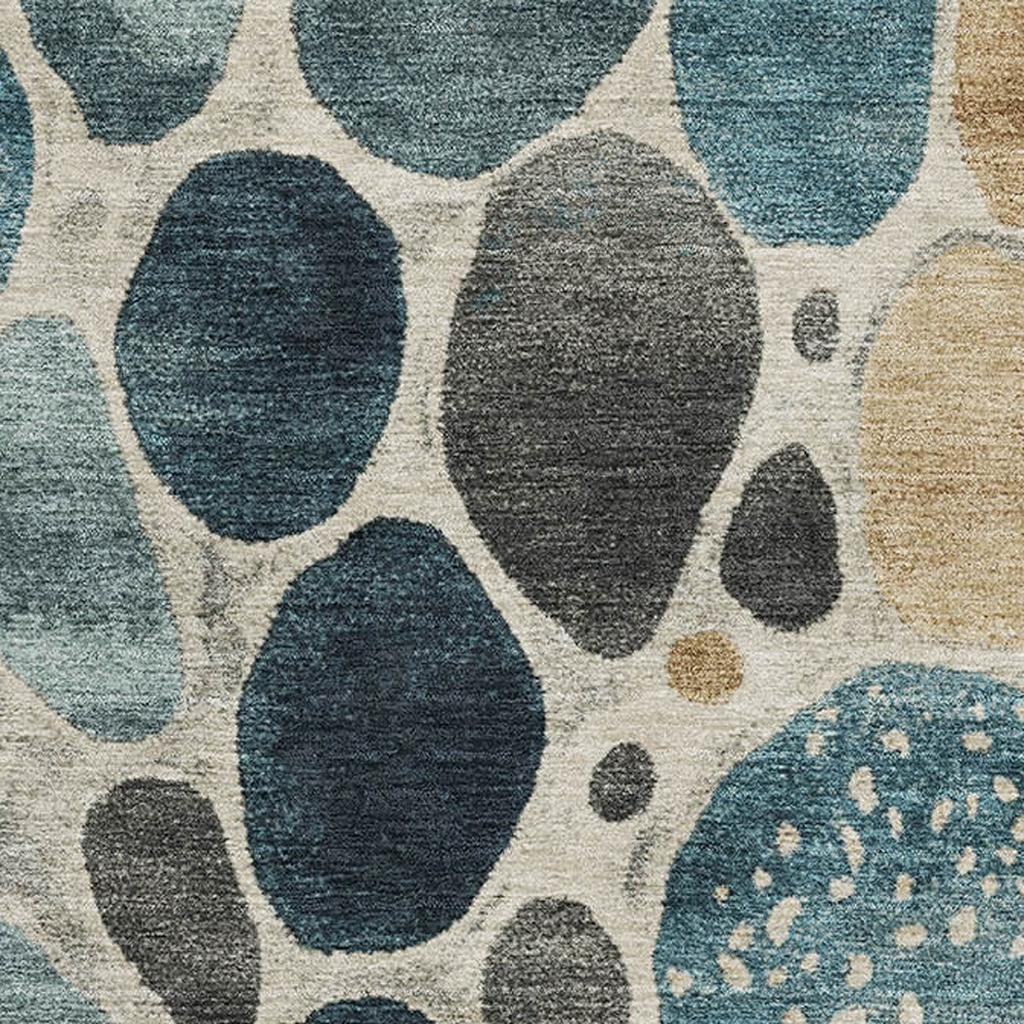 Add great coloration and comfortable texture to your space with this 9-foot x 12-foot teal beige and ivory geometric washable area rug with uv protection. Ideal for spaces with kids and pets, this rug is stain resistant to help repel dirt and spilled liquids. Built to last, this rug crafted from polyester fibers is known for its durability and long lasting appeal. Rugs are a great way to showcase your style, hide imperfections, warm your home and reduce noise. This larger sized, transitional styled rug is ready to create a focal point or statement piece in your room. 108.00-inch h x 144.00-inch w x 0.39-inch d.