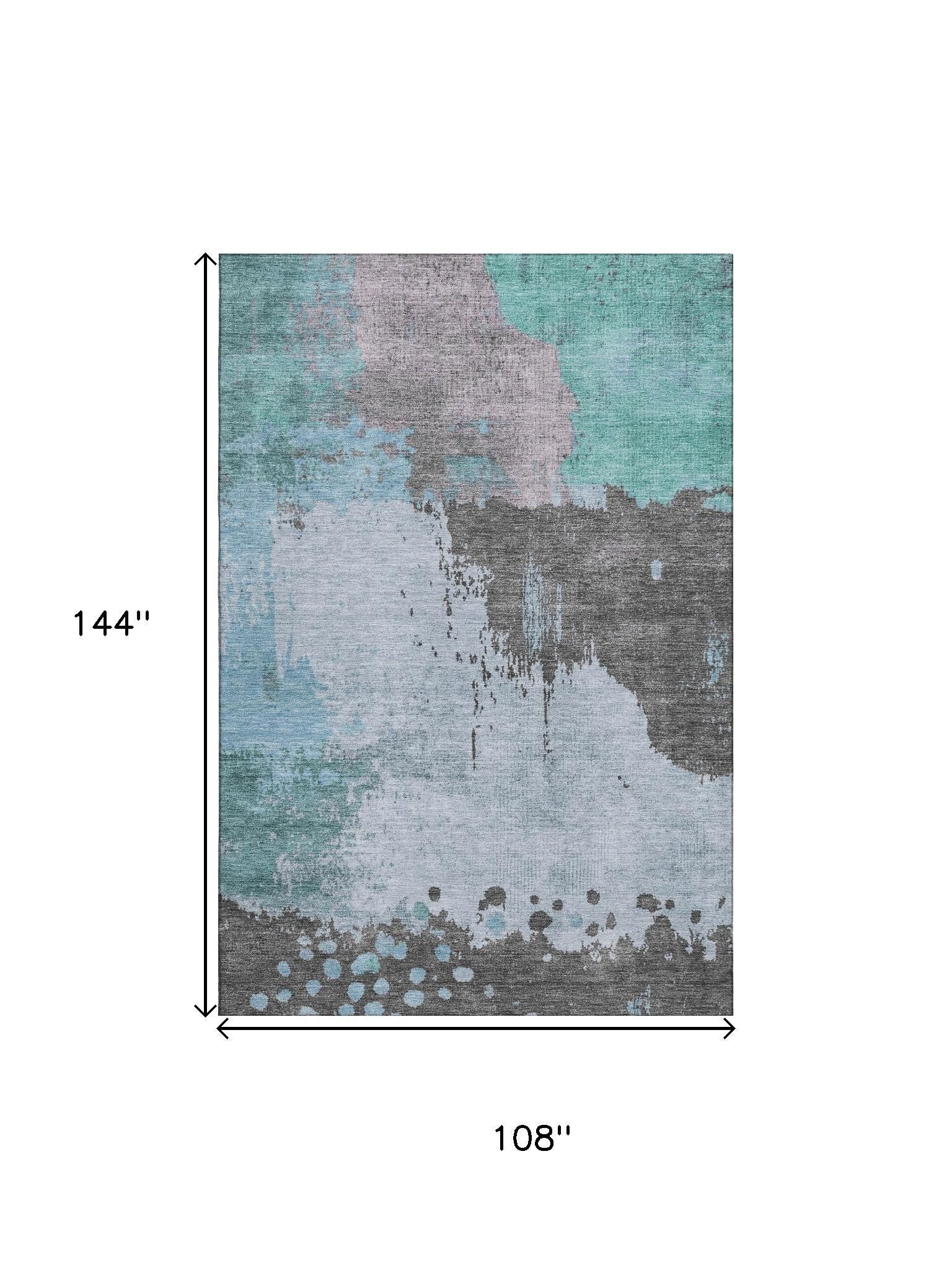 Add great coloration and comfortable texture to your space with this 9-foot x 12-foot teal and taupe abstract washable area rug with uv protection. Ideal for spaces with kids and pets, this rug is stain resistant to help repel dirt and spilled liquids. Built to last, this rug crafted from polyester fibers is known for its durability and long lasting appeal. Rugs are a great way to showcase your style, hide imperfections, warm your home and reduce noise. This larger sized, transitional styled rug is ready to create a focal point or statement piece in your room. 108.00-inch h x 144.00-inch w x 0.39-inch d.
