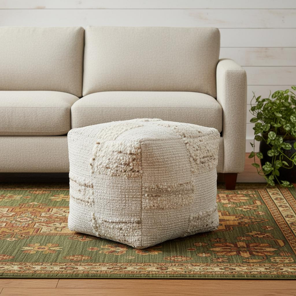 upholstery cube checkered pouf ottoman, cube checkered pouf ottoman, 18" ivory upholstery cube checkered, ivory upholstery cube checkered pouf, 18" ivory upholstery cube |