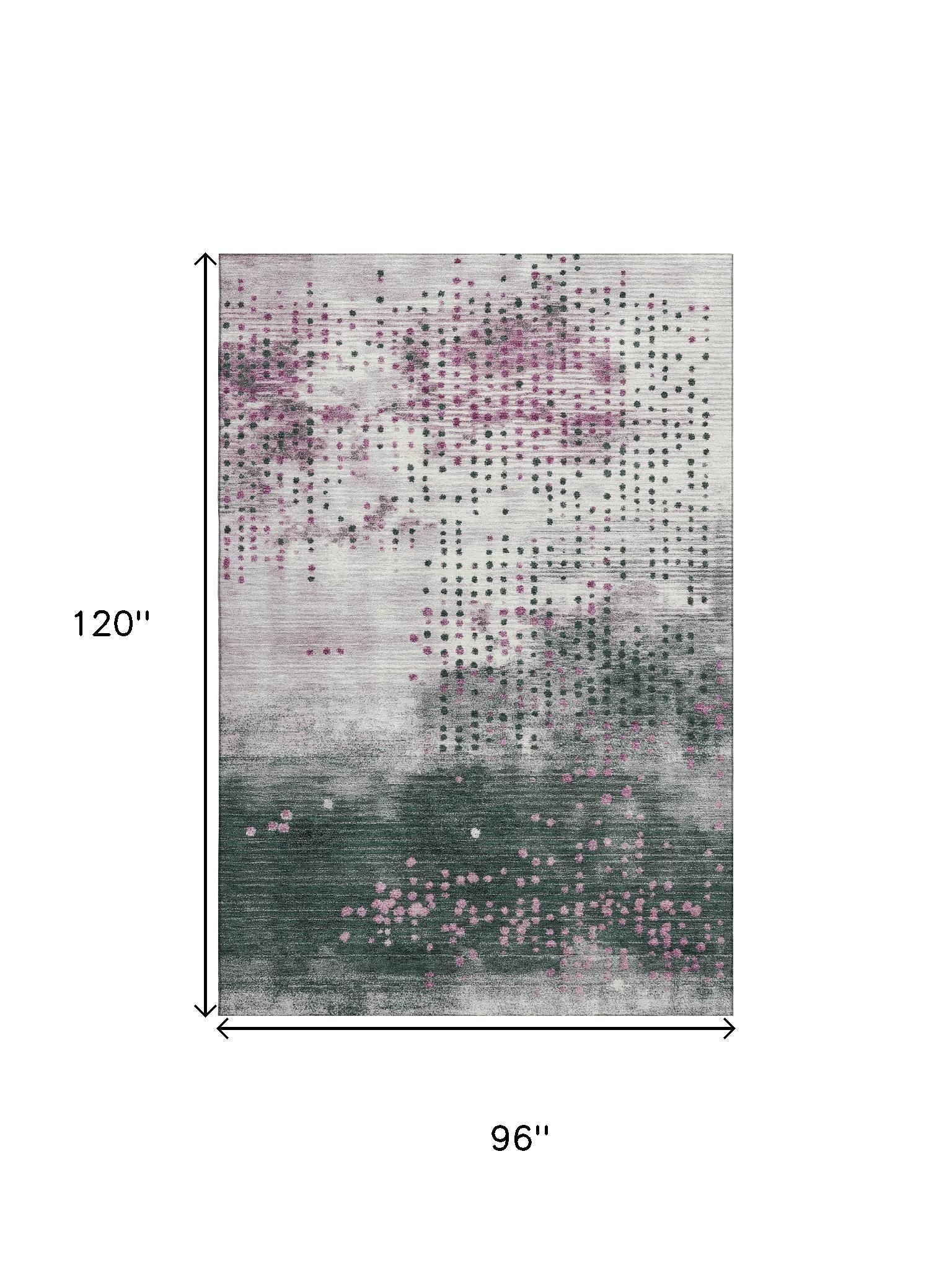 This 8-foot x 10-foot blush and emerald geometric washable area rug with uv protection, is a great way to add warmth to a room. Ideal for spaces with kids and pets, this rug is stain resistant to help repel dirt and spilled liquids. Built to last, this rug crafted from polyester fibers is known for its durability and long lasting appeal. Rugs are a great way to showcase your style, hide imperfections, warm your home and reduce noise. This larger sized, transitional styled rug is ready to create a focal point or statement piece in your room. 96.00-inch h x 120.00-inch w x 0.39-inch d.