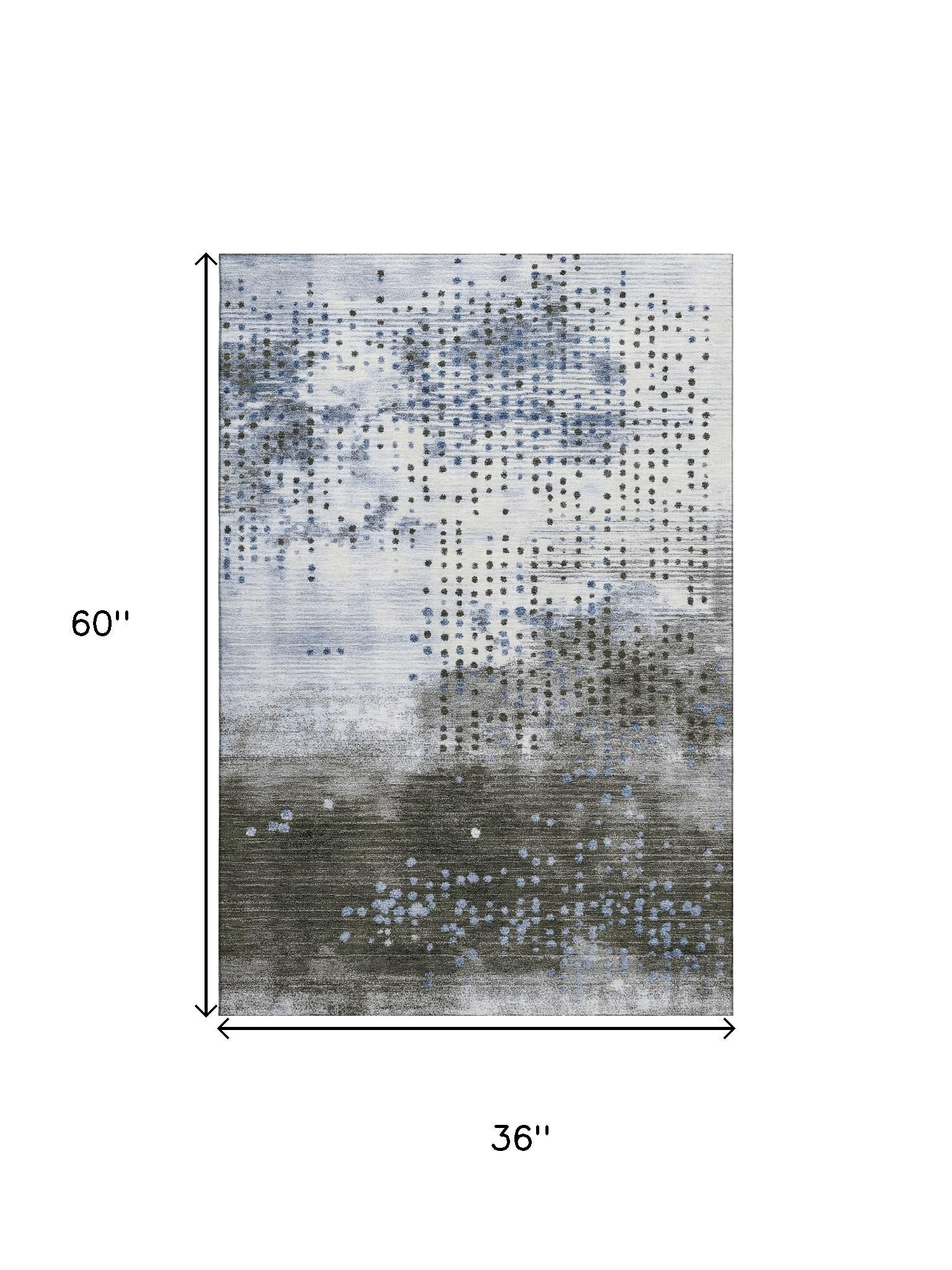 Set an inviting tone in your space with this 3-foot x 5-foot denim blue and chocolate geometric washable area rug with uv protection. Ideal for spaces with kids and pets, this rug is stain resistant to help repel dirt and spilled liquids. Built to last, this rug crafted from polyester fibers is known for its durability and long lasting appeal. Rugs are a great way to showcase your style, hide imperfections, warm your home and reduce noise. This smaller sized, transitional styled rug is just what you need for your walkway, bedside, in front of door, cabinet, refrigerator, or chair. 36.00-inch h x 60.00-inch w x 0.39-inch d.