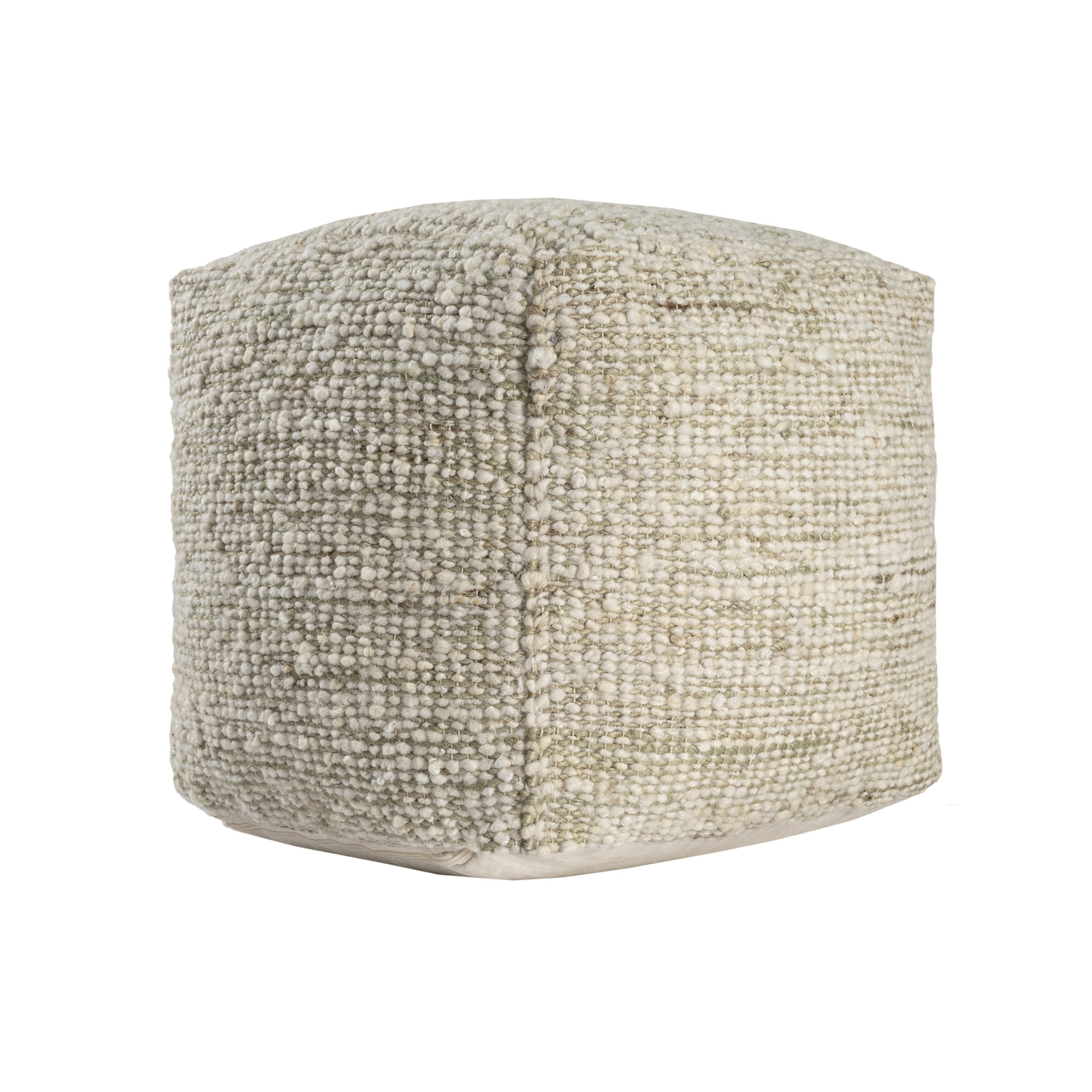 Practicality and fashion mix together with this handy 18-inch ivory upholstery striped pouf ottoman. Add chic style to your space with this fun pouf that not only looks cool but can be a great foot rest or extra seat when needed. The upholstery top of this ottoman is a nice contrast to the upholstery material. Expertly upholstered with padding and soft cotton, wool, and jute in a striped pattern, this ottoman is as comfortable as it is good looking. Easy to blend into most any room, a ottoman is a way to add a good looking accent to your space that can also be practical and useful. 18.00-inch h x 18.00-inch w x 18.00-inch d.
