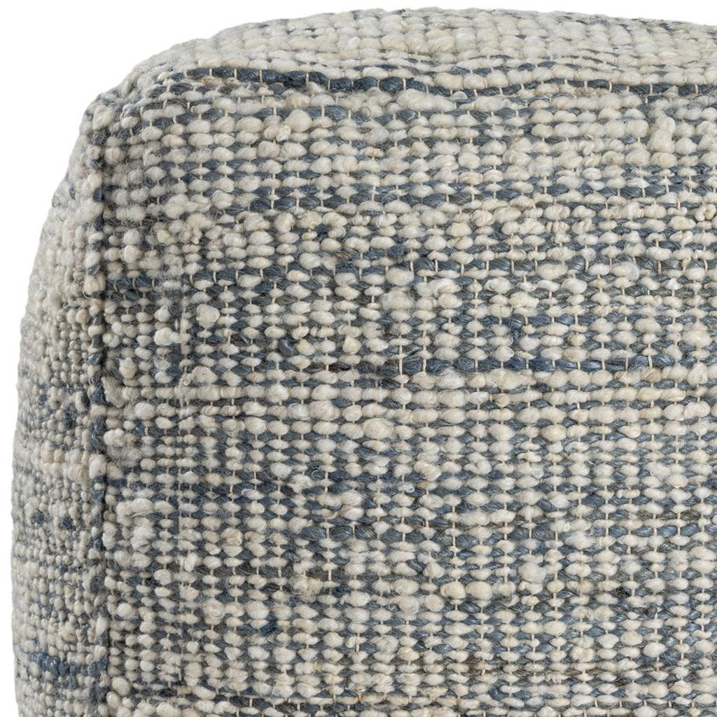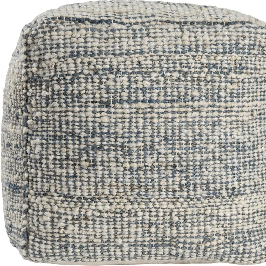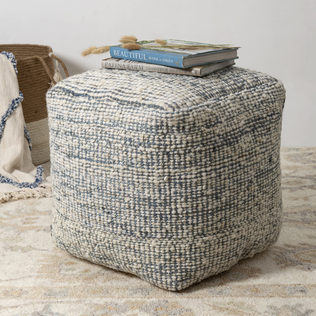 Add a good looking decorative accent to your space that is also practical for seating. Add chic style to your space with this fun pouf that not only looks cool but can be a great foot rest or extra seat when needed. The upholstery top of this ottoman is a nice contrast to the upholstery material. Expertly upholstered with padding and soft cotton, wool, and jute in a striped pattern, this ottoman is as comfortable as it is good looking. Easy to blend into most any room, a ottoman is a way to add a good looking accent to your space that can also be practical and useful. 18.00-inch h x 18.00-inch w x 18.00-inch d.