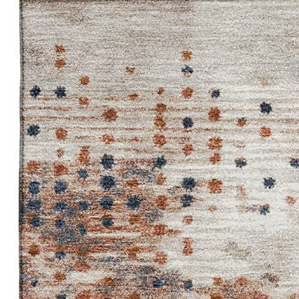 Add great coloration and comfortable texture to your space with this 5-foot x 8-foot linen and blue geometric washable area rug with uv protection. Ideal for spaces with kids and pets, this rug is stain resistant to help repel dirt and spilled liquids. Built to last, this rug crafted from polyester fibers is known for its durability and long lasting appeal. Rugs are a great way to showcase your style, hide imperfections, warm your home and reduce noise. This larger sized, transitional styled rug is ready to create a focal point or statement piece in your room. 60.00-inch h x 90.00-inch w x 0.39-inch d.