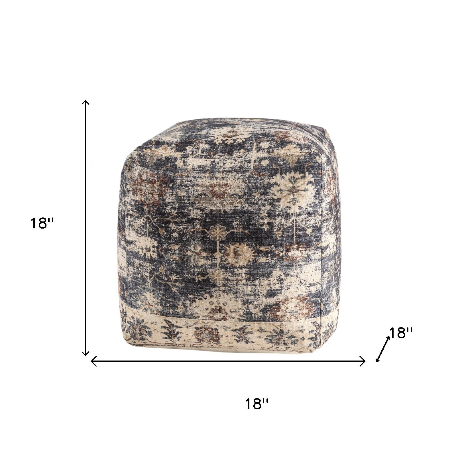 Practicality and fashion mix together with this handy 18-inch navy blue and tan upholstered medallion pouf ottoman. Add chic style to your space with this fun pouf that not only looks cool but can be a great foot rest or extra seat when needed. The upholstery top of this ottoman is a nice contrast to the upholstery material. The purposefully distressed finish gives this versatile ottoman an authentically rustic feel. Expertly upholstered with padding and soft polyester in a medallion pattern, this ottoman is as comfortable as it is good looking. Easy to blend into most any room, a ottoman is a way to add a good looking accent to your space that can also be practical and useful. 18.00-inch h x 18.00-inch w x 18.00-inch d.