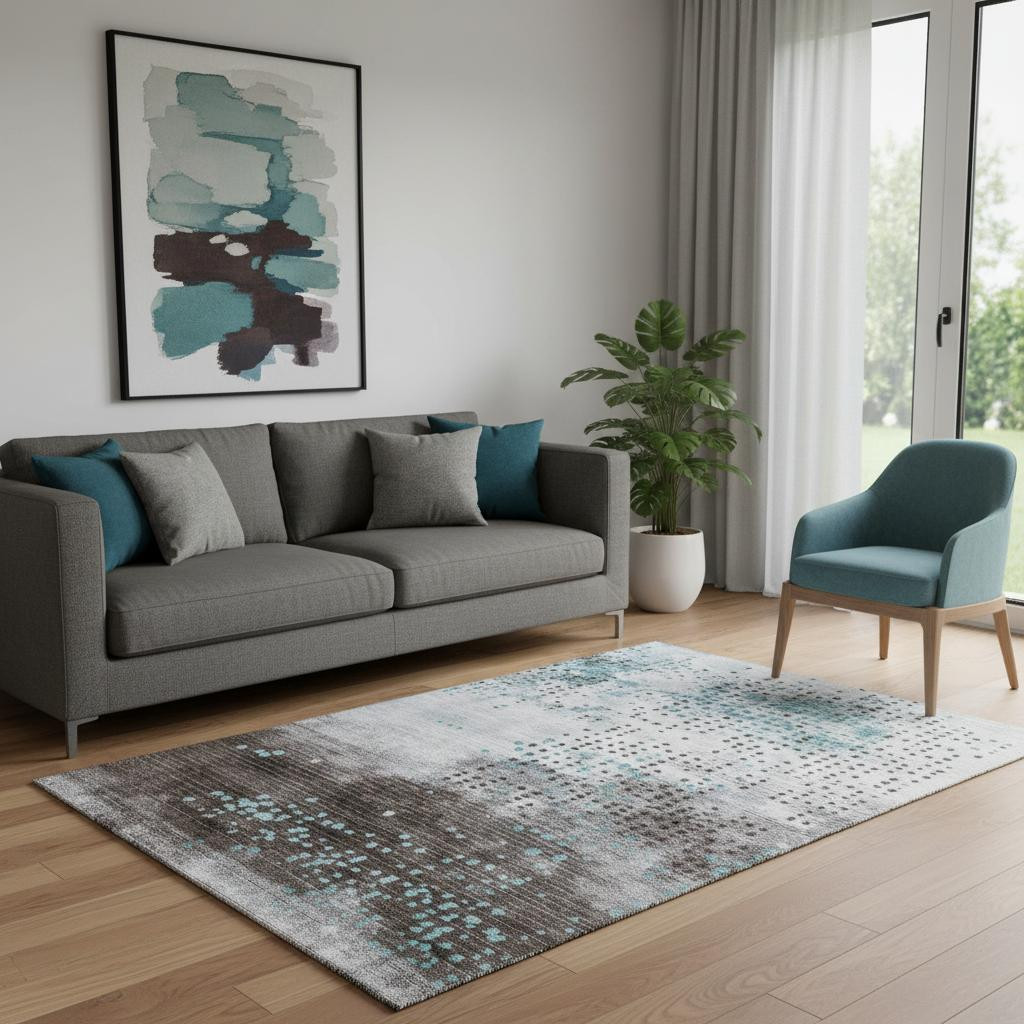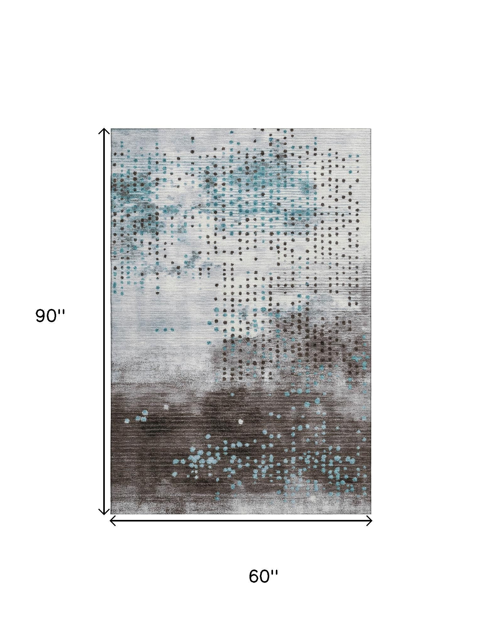 This 5-foot x 8-foot teal and chocolate geometric washable area rug with uv protection, is a great way to add warmth to a room. Ideal for spaces with kids and pets, this rug is stain resistant to help repel dirt and spilled liquids. Built to last, this rug crafted from polyester fibers is known for its durability and long lasting appeal. Rugs are a great way to showcase your style, hide imperfections, warm your home and reduce noise. This larger sized, transitional styled rug is ready to create a focal point or statement piece in your room. 60.00-inch h x 90.00-inch w x 0.39-inch d.