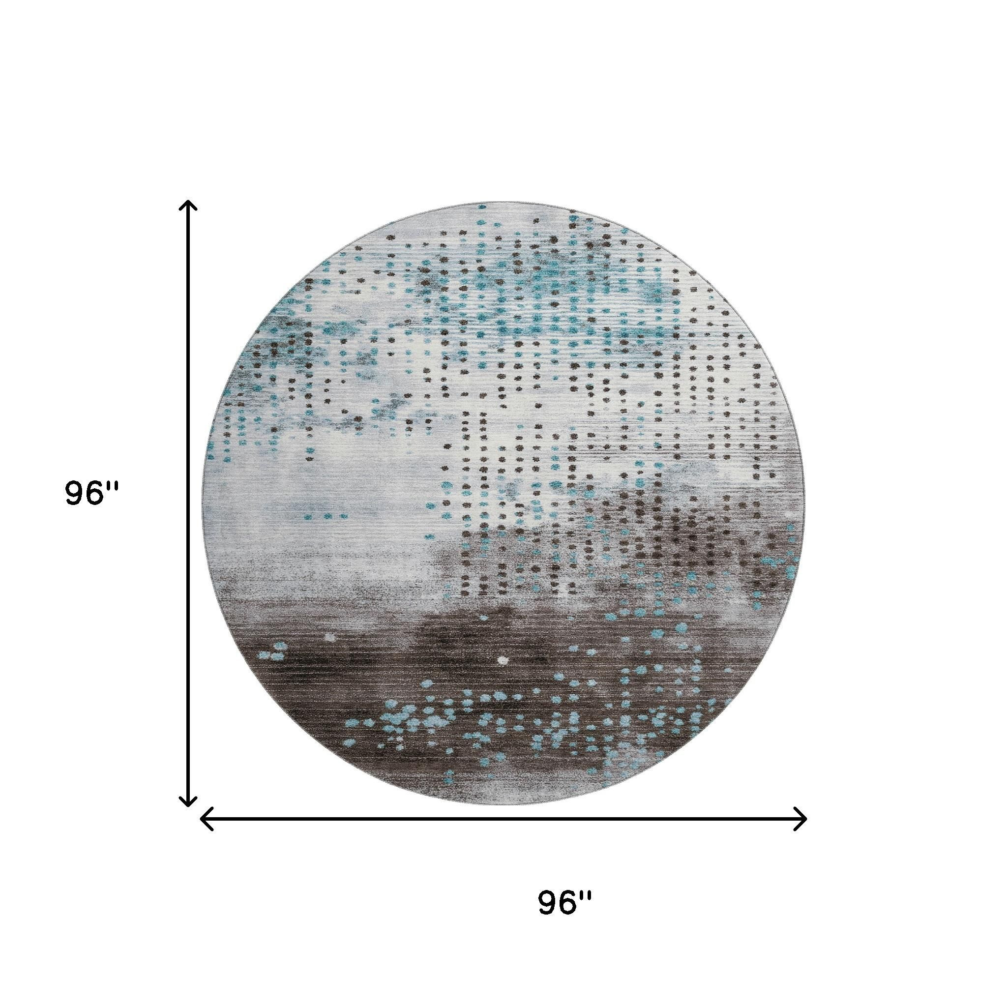 Add some artistry to your room with this 8-foot teal and chocolate geometric washable round rug with uv protection. Ideal for spaces with kids and pets, this rug is stain resistant to help repel dirt and spilled liquids. Built to last, this rug crafted from polyester fibers is known for its durability and long lasting appeal. Rugs are a great way to showcase your style, hide imperfections, warm your home and reduce noise. This larger sized, transitional styled rug is ready to create a focal point or statement piece in your room. 96.00-inch h x 96.00-inch w x 0.39-inch d.