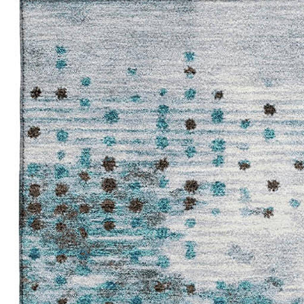 Set an inviting tone in your space with this 10-foot x 14-foot teal and chocolate geometric washable area rug with uv protection. Ideal for spaces with kids and pets, this rug is stain resistant to help repel dirt and spilled liquids. Built to last, this rug crafted from polyester fibers is known for its durability and long lasting appeal. Rugs are a great way to showcase your style, hide imperfections, warm your home and reduce noise. This larger sized, transitional styled rug is ready to create a focal point or statement piece in your room. 120.00-inch h x 168.00-inch w x 0.39-inch d.