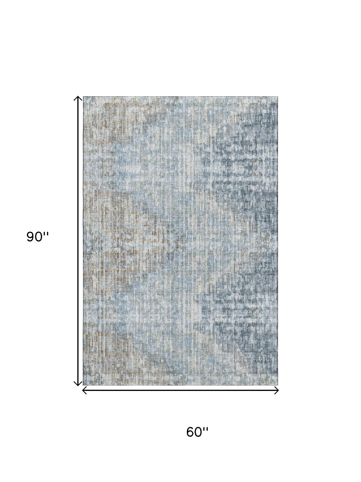 Add some artistry to your room with this 5-foot x 8-foot denim blue and ivory geometric washable area rug with uv protection. Ideal for spaces with kids and pets, this rug is stain resistant to help repel dirt and spilled liquids. Built to last, this rug crafted from polyester fibers is known for its durability and long lasting appeal. Rugs are a great way to showcase your style, hide imperfections, warm your home and reduce noise. This larger sized, transitional styled rug is ready to create a focal point or statement piece in your room. 60.00-inch h x 90.00-inch w x 0.39-inch d.