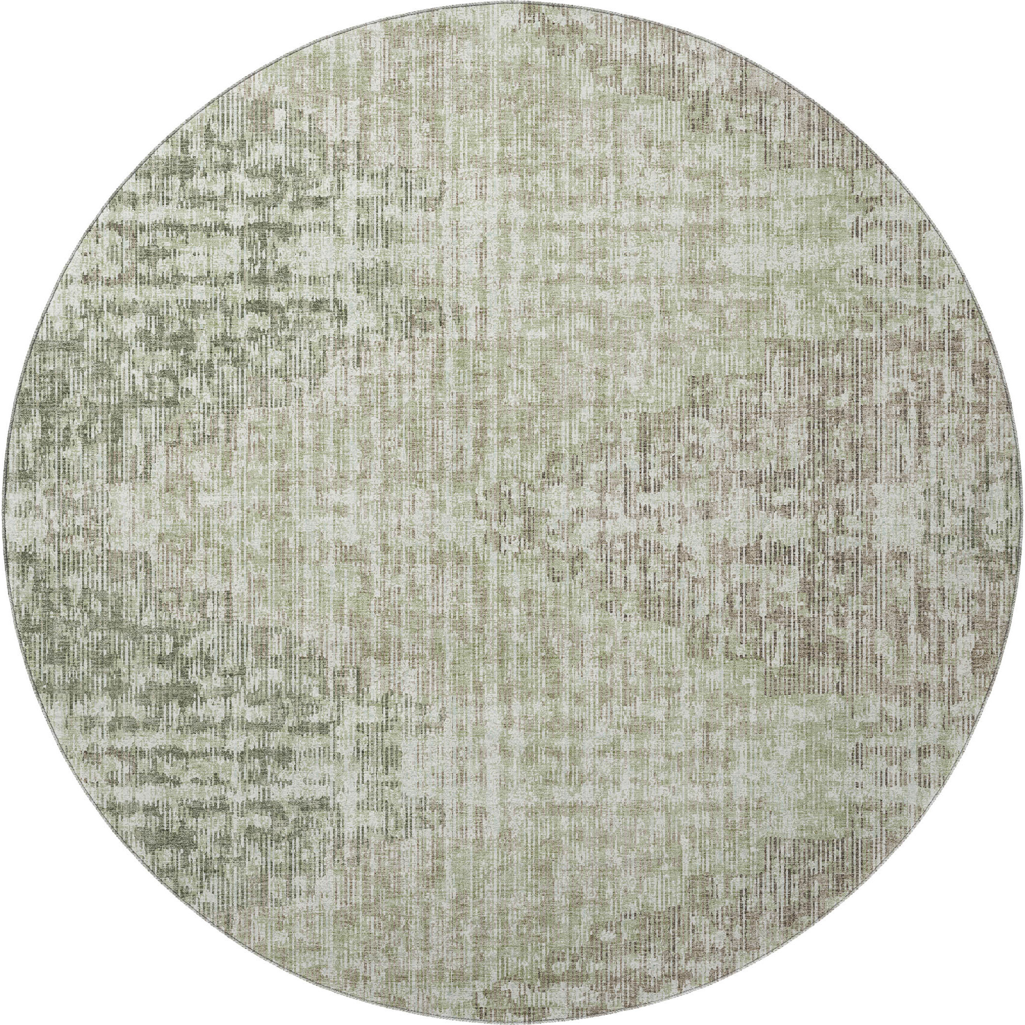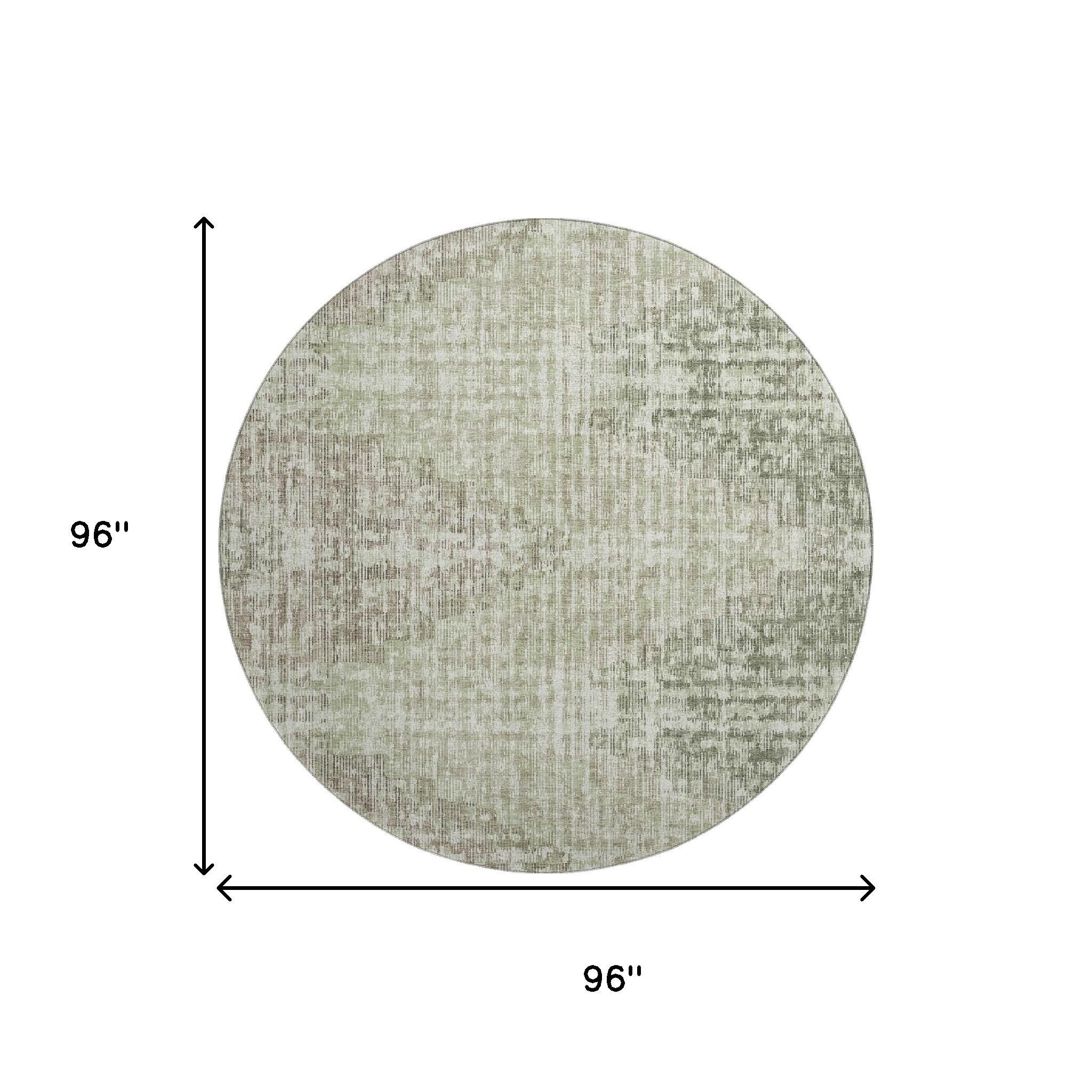 Add some artistry to your room with this 8-foot fern green and taupe geometric washable round rug with uv protection. Ideal for spaces with kids and pets, this rug is stain resistant to help repel dirt and spilled liquids. Built to last, this rug crafted from polyester fibers is known for its durability and long lasting appeal. Rugs are a great way to showcase your style, hide imperfections, warm your home and reduce noise. This larger sized, transitional styled rug is ready to create a focal point or statement piece in your room. 96.00-inch h x 96.00-inch w x 0.39-inch d.