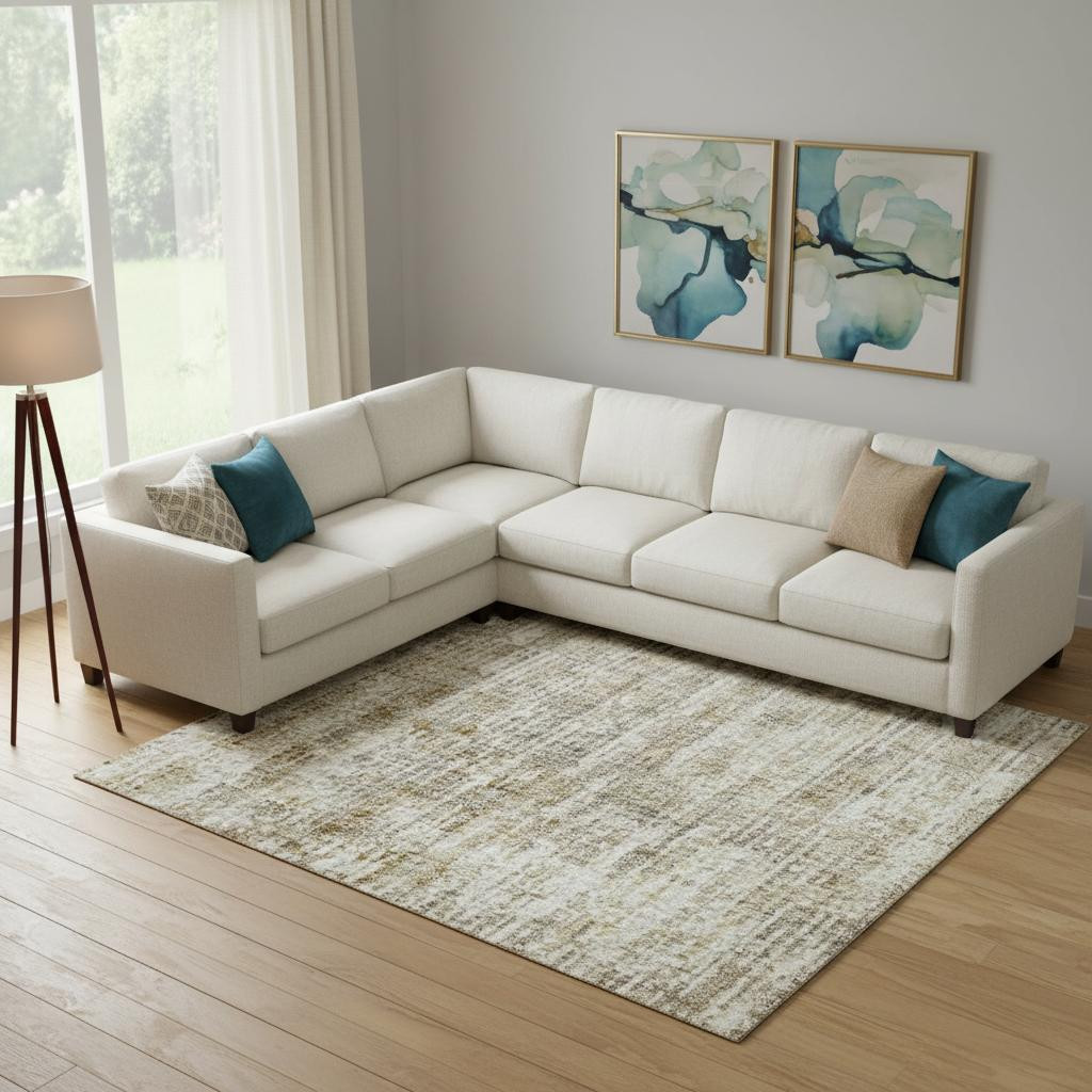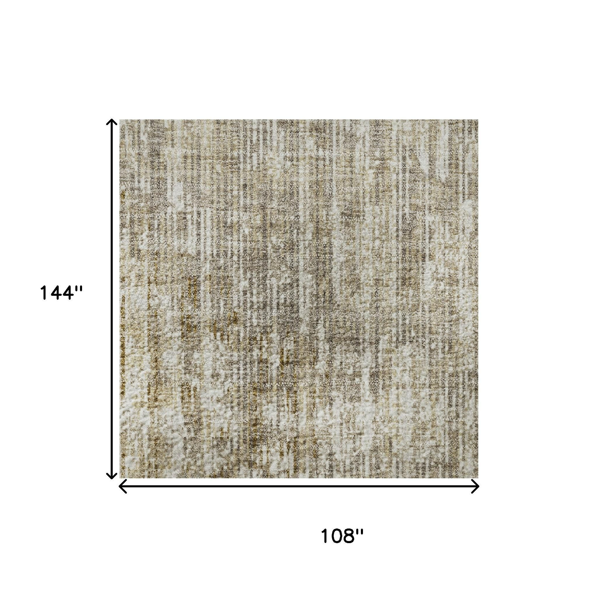 This 9-foot x 12-foot khaki and beige geometric washable area rug with uv protection, is a great way to add warmth to a room. Ideal for spaces with kids and pets, this rug is stain resistant to help repel dirt and spilled liquids. Built to last, this rug crafted from polyester fibers is known for its durability and long lasting appeal. Rugs are a great way to showcase your style, hide imperfections, warm your home and reduce noise. This larger sized, transitional styled rug is ready to create a focal point or statement piece in your room. 108.00-inch h x 144.00-inch w x 0.39-inch d.