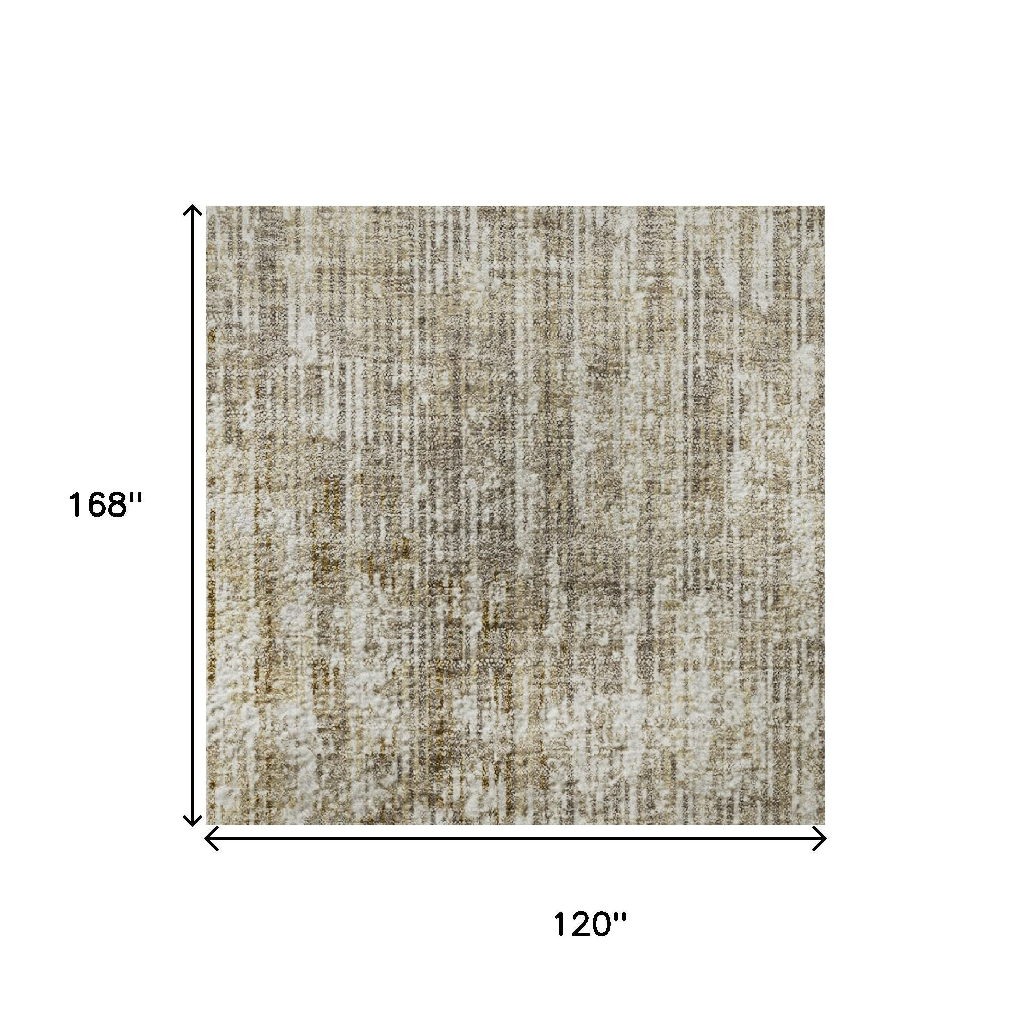 Set an inviting tone in your space with this 10-foot x 14-foot khaki and beige geometric washable area rug with uv protection. Ideal for spaces with kids and pets, this rug is stain resistant to help repel dirt and spilled liquids. Built to last, this rug crafted from polyester fibers is known for its durability and long lasting appeal. Rugs are a great way to showcase your style, hide imperfections, warm your home and reduce noise. This larger sized, transitional styled rug is ready to create a focal point or statement piece in your room. 120.00-inch h x 168.00-inch w x 0.39-inch d.