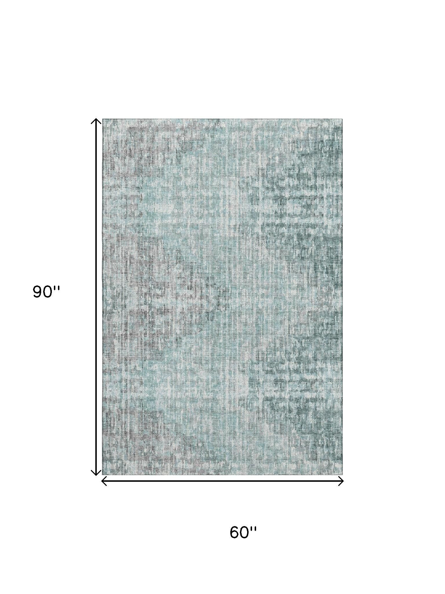Set an inviting tone in your space with this 5-foot x 8-foot teal and gray geometric washable area rug with uv protection. Ideal for spaces with kids and pets, this rug is stain resistant to help repel dirt and spilled liquids. Built to last, this rug crafted from polyester fibers is known for its durability and long lasting appeal. Rugs are a great way to showcase your style, hide imperfections, warm your home and reduce noise. This larger sized, transitional styled rug is ready to create a focal point or statement piece in your room. 60.00-inch h x 90.00-inch w x 0.39-inch d.
